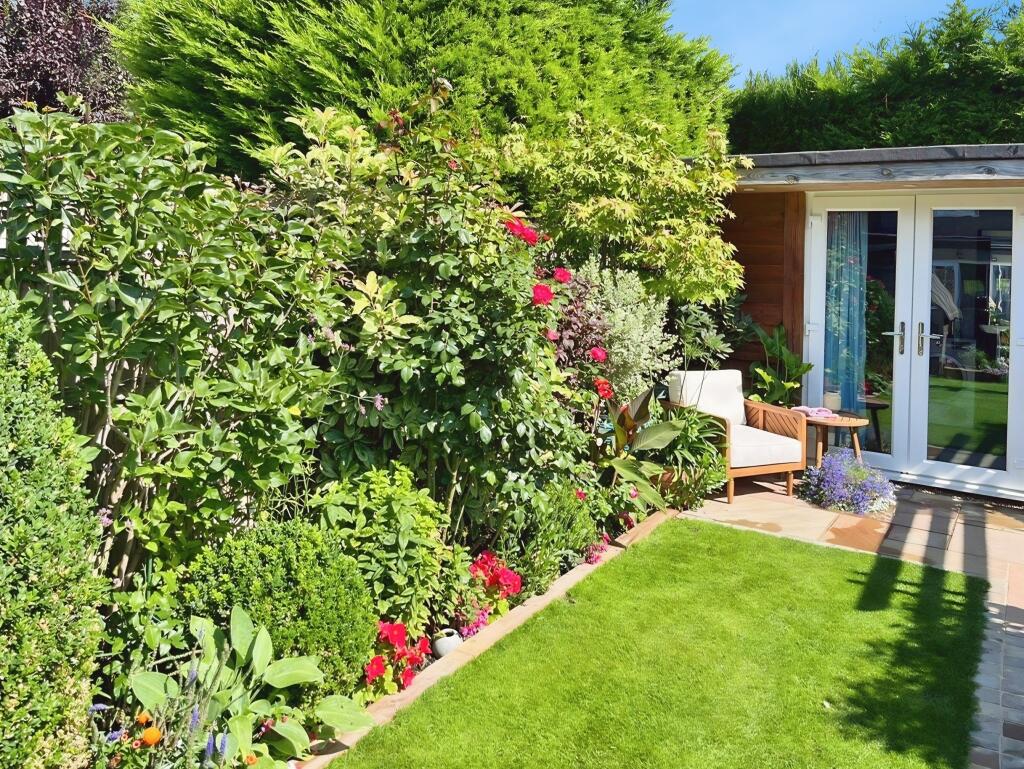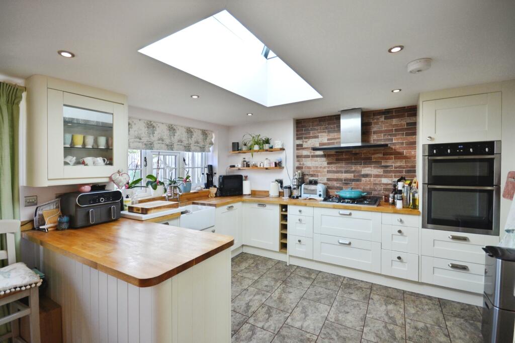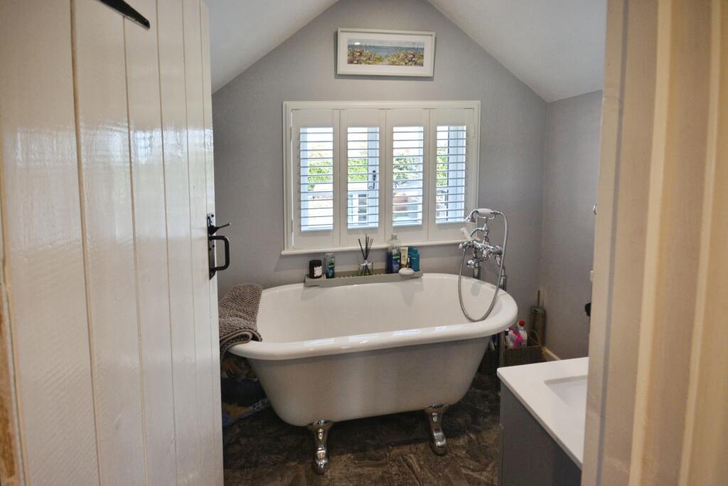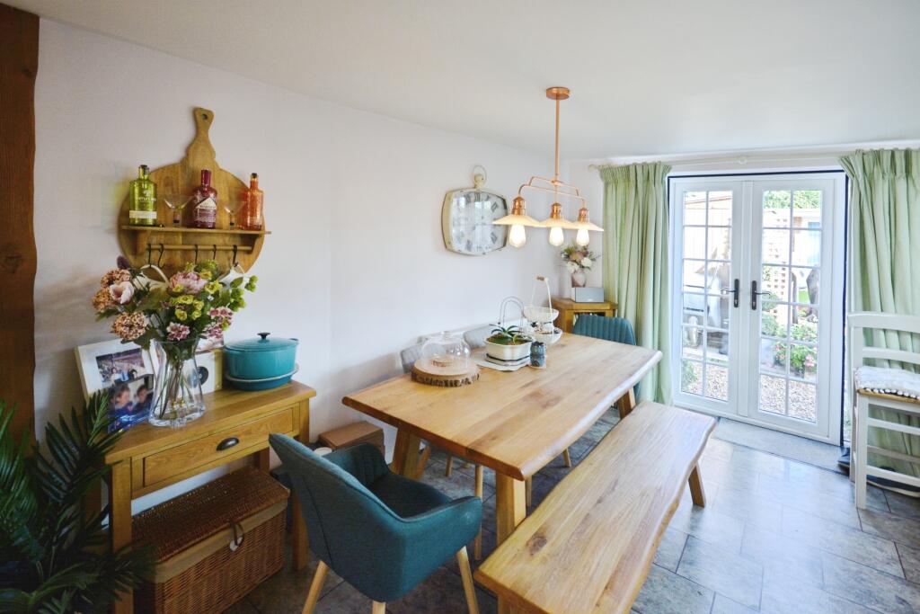 Apple Tree Cottage is an end-of-terrace property located on Hanscombe End Road in Shillington, near Hitchin. It features three bedrooms and two bathrooms. The property appears to be well-maintained and in good condition, with a modern kitchen and bathrooms. It also benefits from a good-sized rear garden with a shed and greenhouse, as well as off-street parking to the front. The location offers a balance between rural living and access to nearby amenities in Hitchin. The property is located within a reasonable distance of local schools, which have received a ‘Good’ Ofsted rating.