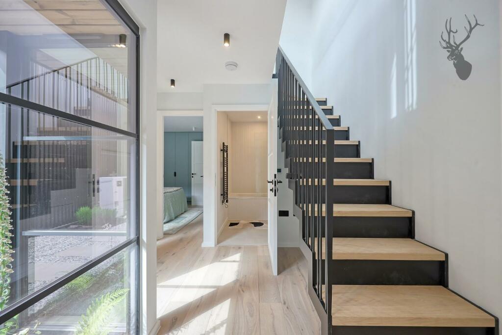 This two-bedroom duplex apartment at The Coach Yard, Balmoral Road, Leyton, is a newly built property showcasing contemporary design and high-quality finishes. The images reveal a modern, stylish interior with a well-equipped kitchen and two bathrooms. The property includes a private courtyard garden, although its size appears relatively modest based on the provided photos. The property is located in Leyton, E10 5NA which benefits from reasonably good transport links via the nearby Leyton tube station (London Overground), and a range of schools are within walking distance though their Ofsted ratings vary. Potential downsides for some buyers could be the proximity to the stadium, or the limited exterior space. The listing price of £625,000 is in line with market prices in the area, but without more definitive comparable property data it is hard to say if the property is outstanding value.