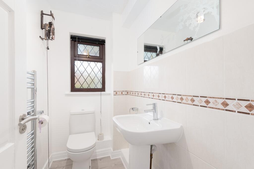 This property is a 4 bedroom, 3 bathroom detached house located in Clayton-le-Woods, Lancashire. The property is listed at £415,000 and has a plot size of 1,909.50 sqft. The average price for properties in the area is £515,185 with an average price per sqft of £553.00. The property benefits from being close to several highly-rated primary schools, with the nearest being less than a kilometer away. There are also several train stations within a reasonable distance, making commuting convenient. The property itself appears to be in good condition, with a well-maintained garden. The thatch roof is a unique feature. While the property is smaller than the average size for the area, its price is significantly lower, making it potentially good value for money.