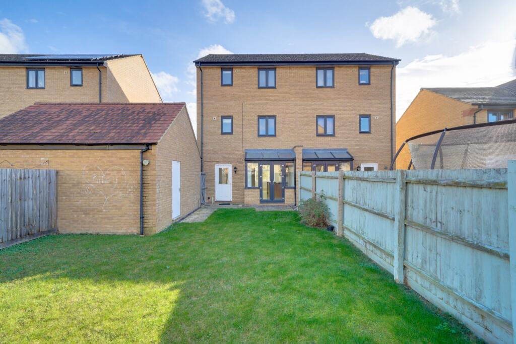 Rarely available three storey, four bedroom semi detached town house with spacious open plan kitchen/dining/family room, single garage, driveway and easy access to Cambridge and London. This generous home is located a short walk from St Ives town centre and close to Hemingford Grey village school