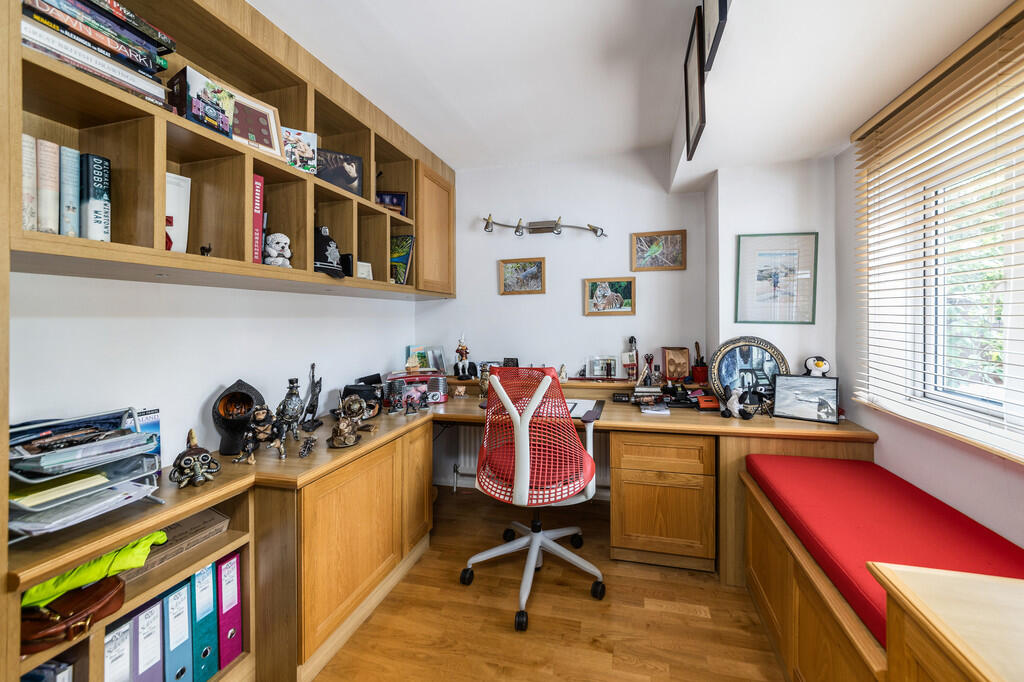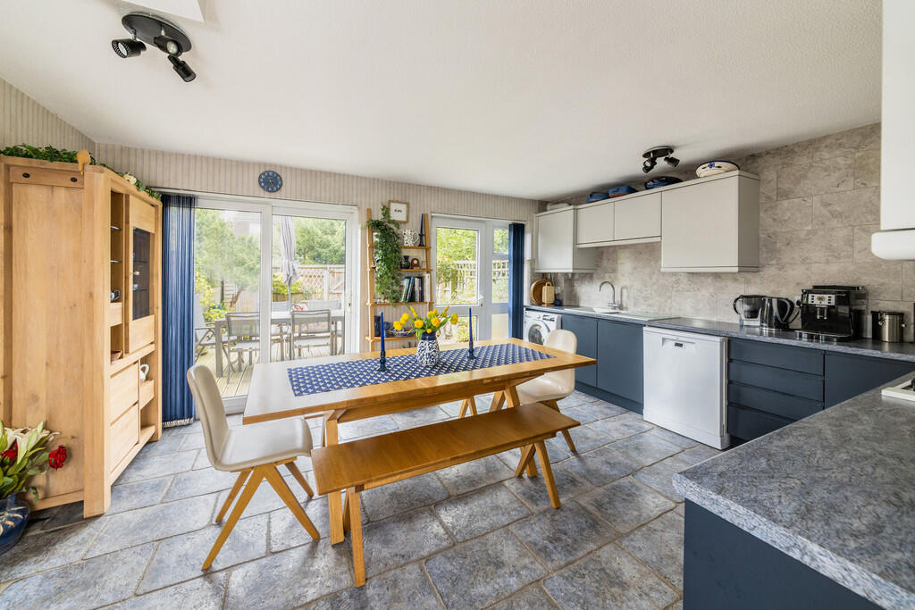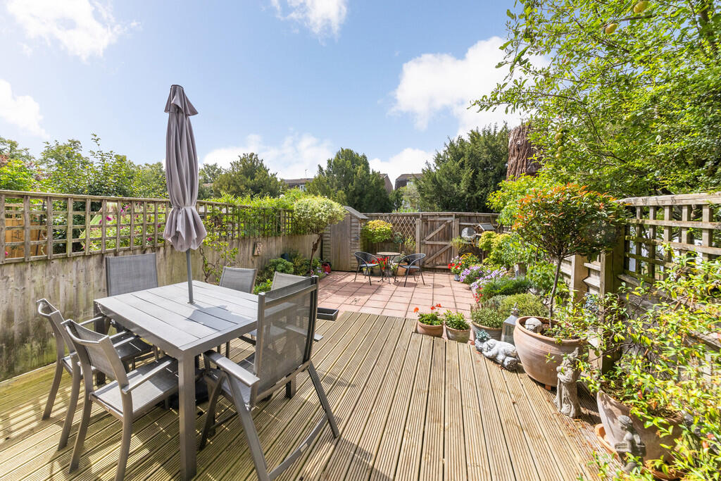 A four bedroom town house, a short riverside walk from the town centre and offering over 1300sq ft of well presented living space. Two bath/shower rooms, large kitchen, home office and sunny garden backing onto a small green.
