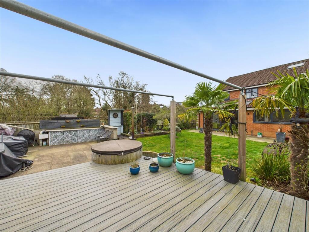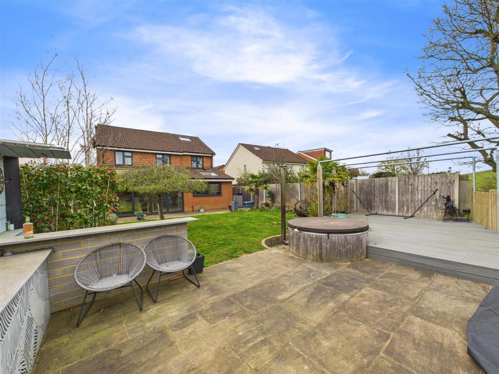 This property is a 6 bedroom, 3 bathroom detached house located in Regency Gardens, Walton-on-Thames. The area benefits from nearby schools, including Walton Oak Primary School (0.35km) and Cardinal Newman Catholic Primary School (1.31km), both with good Ofsted ratings. Multiple South Western Railway stations are within a reasonable distance, providing convenient access to London and other areas. The property itself appears to be in excellent condition, with a recently modernised kitchen and extension. There is also a substantial garden with a patio area, hot tub, and outdoor kitchen. The list price of £950,000 seems high compared to the average price of £526,714 in the area, however, given the size (2135 sqft), condition, and desirable features, it may be justified. More information on the plot size would be helpful to fully assess the land value.