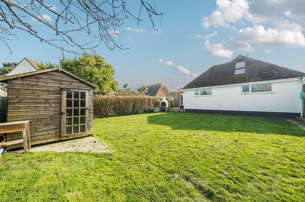 Deceptively spacious detached chalet style family home near the beach. 5 double bedrooms, flexible layout for multi-generational living. Living room, home office, 3 bathrooms. Detached annexe/studio with en-suite & gated parking for 4/5 cars. EPC-D, council tax-E