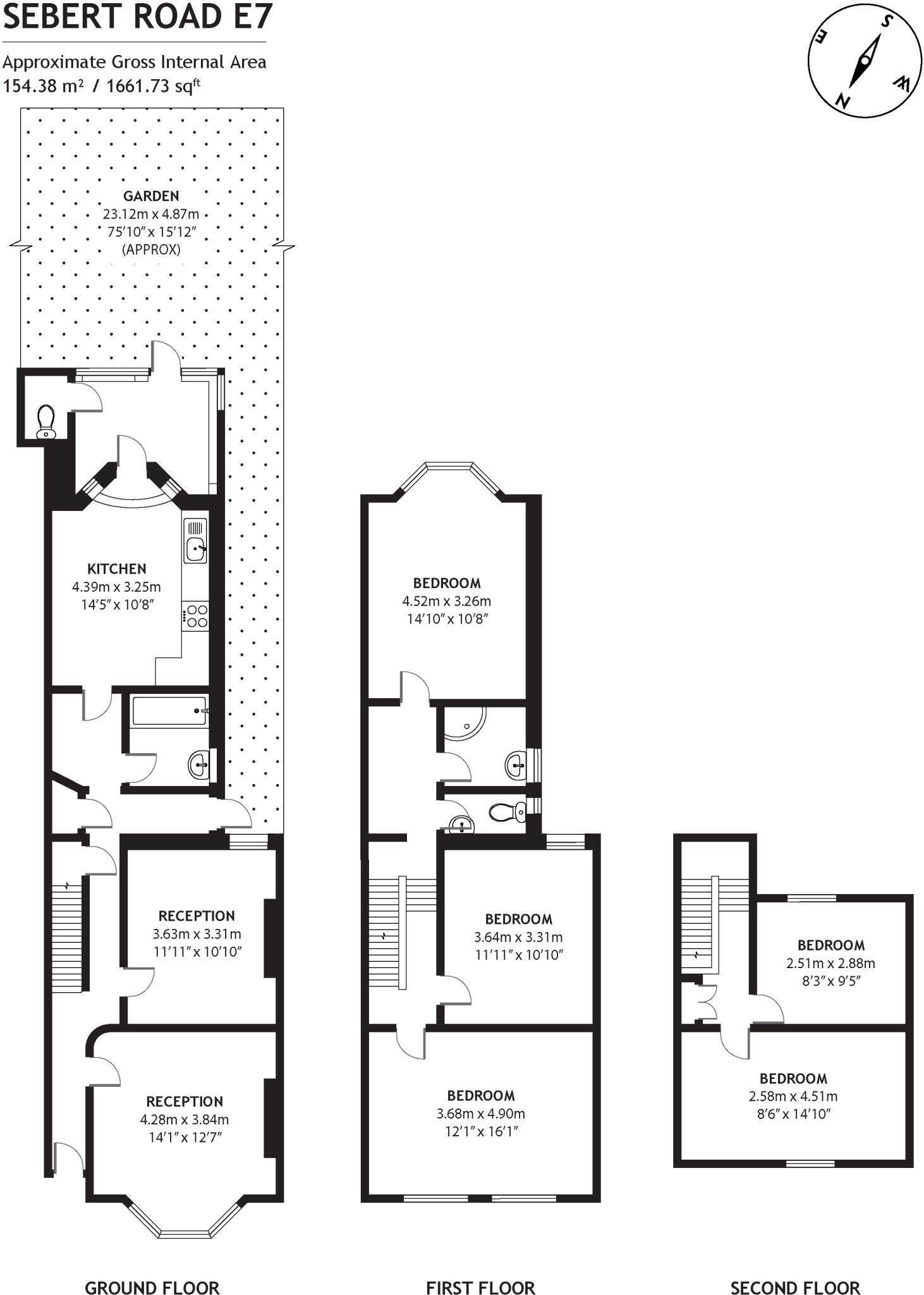 This terraced property is located on Sebert Road, in Forest Gate, London. The property features 5 bedrooms and 2 bathrooms, with a total square footage of 1,661.73 and a plot size of 1,214.11 sqft.