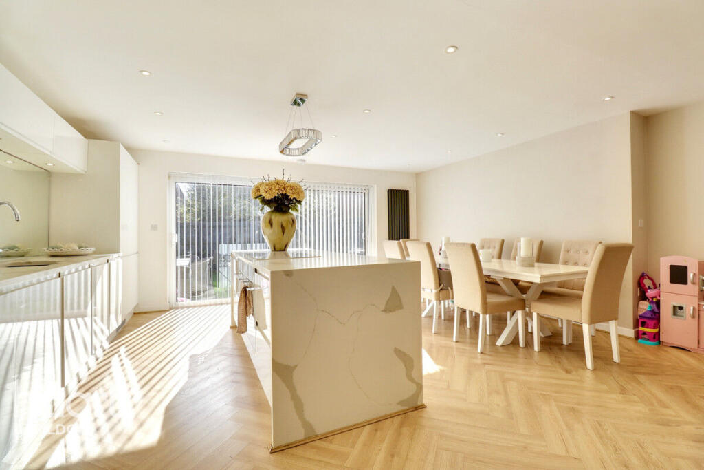 This is a four-bedroom terraced house in Laindon Park, Basildon. The property benefits from a modern interior, three bathrooms, and a rear garden. It also has a garage. While the listing price is higher than the average for the area, the condition and number of bedrooms could justify the premium. Nearby schools and transportation links add to the property’s appeal.