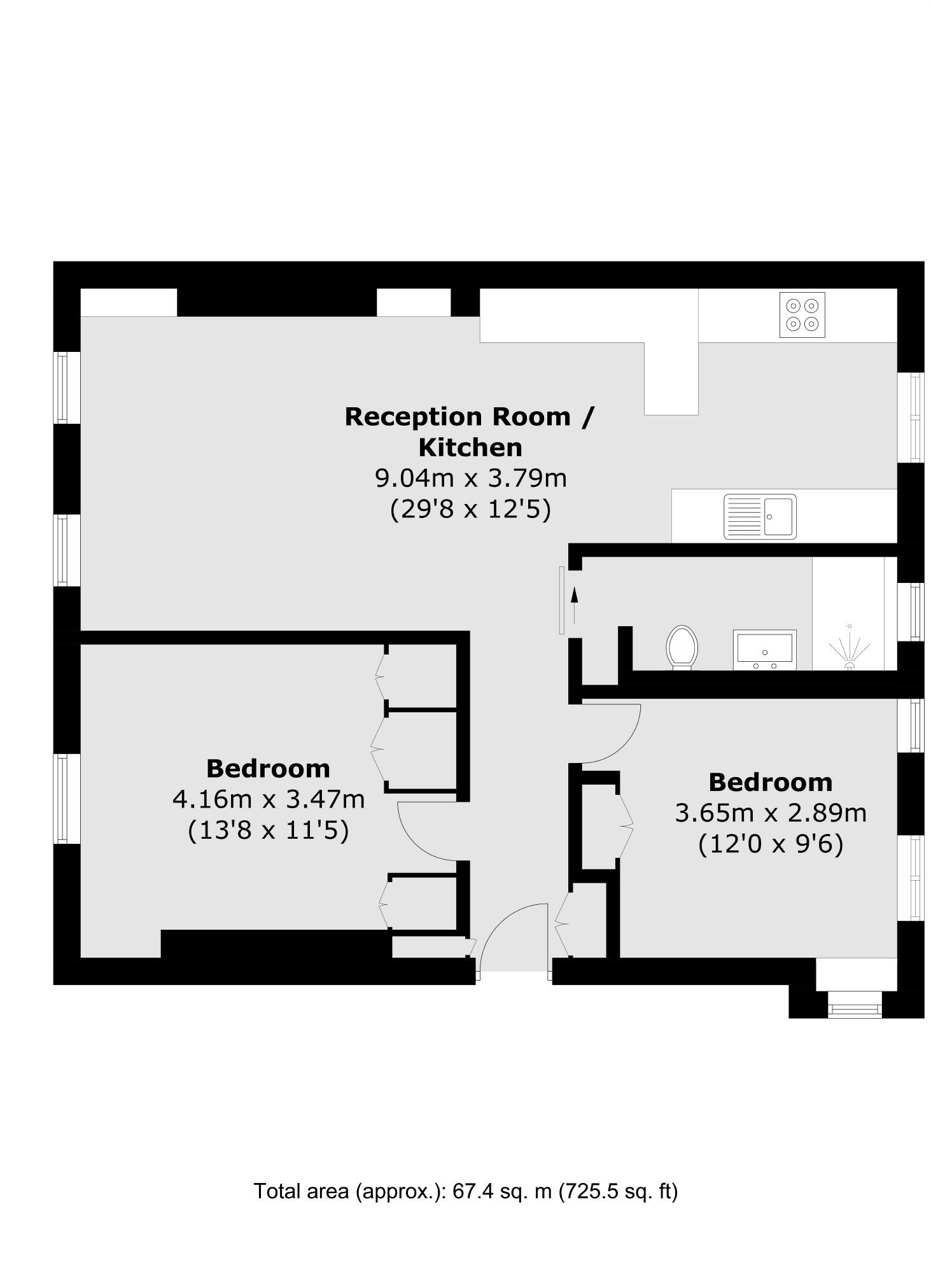 A two double bedroom period conversion. Situated on the top floor with a minimalist interior and a bright dual aspect combined living, dining and kitchen area. Long lease of 117 years.