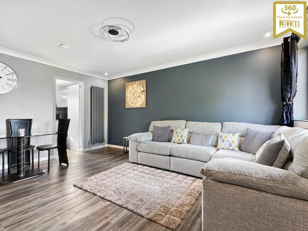Viewing essential! First floor modern style flat in popular locale comprising: hall, dining lounge, fully fitted modern kitchen, two bedrooms & modern shower room. DG GCH Allocated parking. Private gdns.