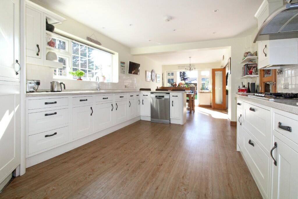 This five-bedroom detached house located on The Fairway within the Aldwick Bay Estate presents a compelling proposition for prospective buyers. The property’s significant advantages include its prime location near the beach, a large and well-maintained garden, and a high-quality interior finish, suggesting that it has undergone recent renovations. The spacious interior boasts a large open plan living area, multiple bedrooms and bathrooms, plus a double garage with additional parking. The images depict a modern kitchen and updated bathrooms, reflecting contemporary aesthetics and functionality. The expansive garden offers a private and tranquil setting and includes patio areas and landscaping. The proximity to reputable ‘Good’ Ofsted-rated schools adds to the property’s family appeal. Transportation links to nearby towns such as Bognor Regis and Chichester provide convenient access to broader amenities and services. While the asking price is substantial, it aligns with, but may be slightly higher than, the average for comparable properties in the coveted Aldwick Bay Estate. However, due to the absence of complete data on comparable properties, particularly regarding plot size, it’s difficult to establish a definitive price-per-square-foot analysis that would definitively confirm value. Therefore, the price point must be considered in relation to the overall desirability and limited availability of similar properties in this prestigious coastal location.