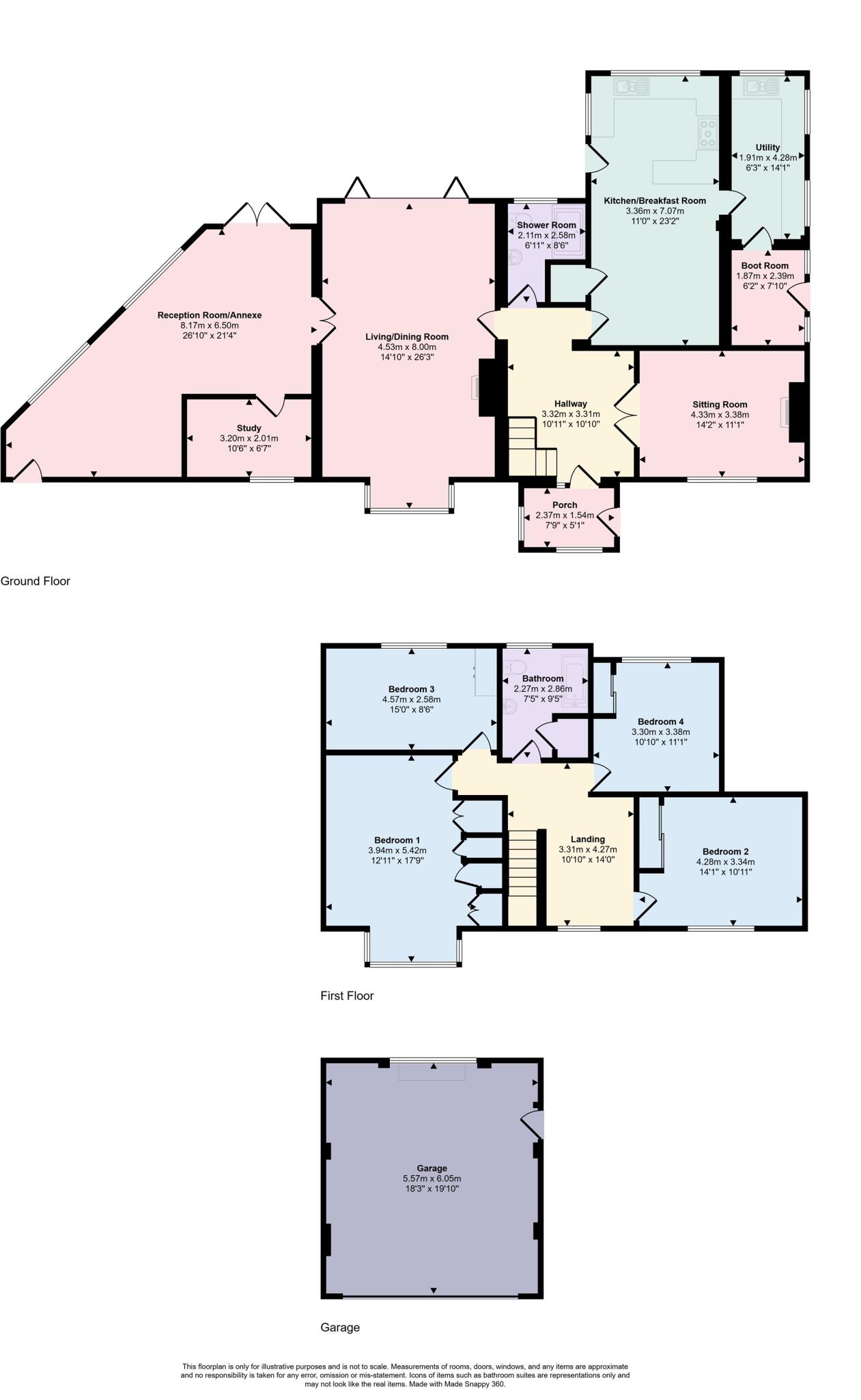 An immaculately presented four bedroom, three reception room detached house with annexe potential, double garage and generous, secluded plot.