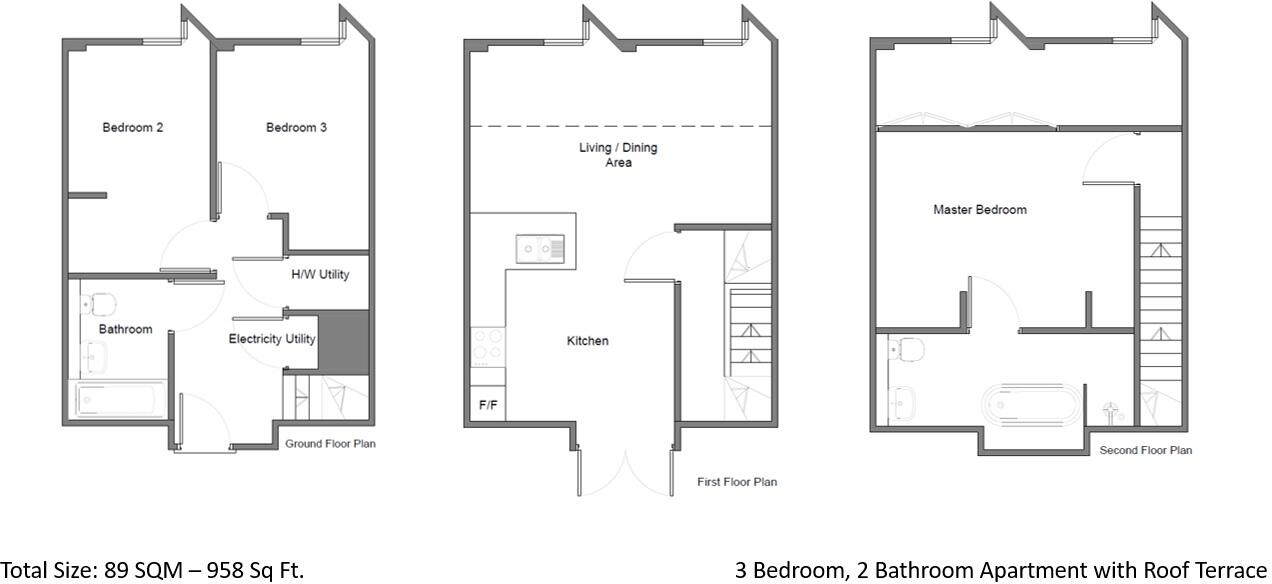 Available from 21st May! - This stunning 3-bedroom, 2-bathroom triplex apartment comes fully furnished and offers access to a private roof terrace. Boasting stylish wooden floors throughout the living areas, floor-to-ceiling windows that flood the space with natural light, and a luxurious freest...