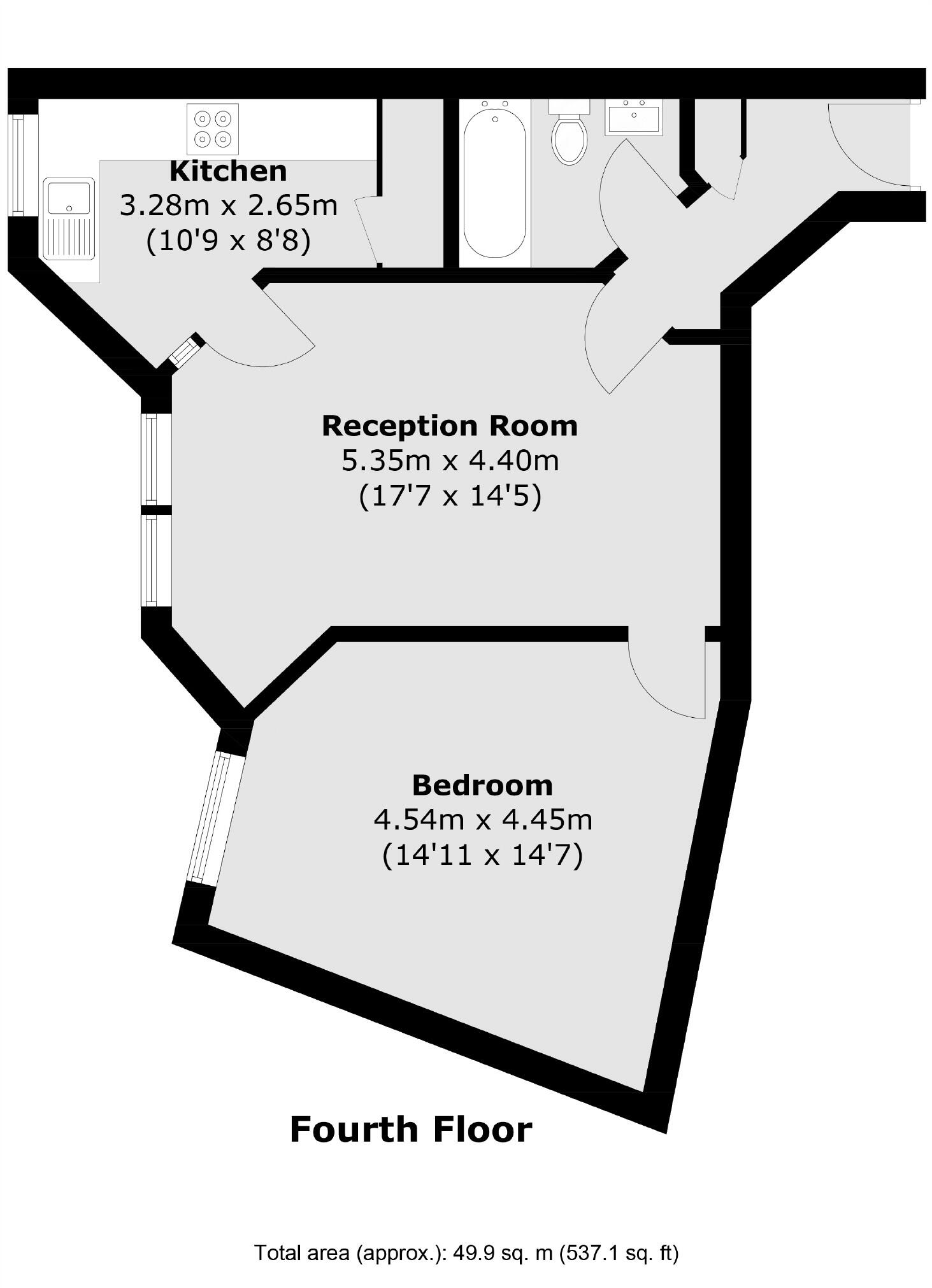Located on the fourth floor of a purpose built development with a lift, a spacious one double bedroom apartment with the added benefit of a separate kitchen - Heating & hot water included.