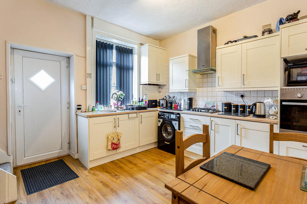 This two-bedroom terraced house in Shaw, Oldham is listed at £145,000. The property benefits from a small rear garden, which is a positive aspect in a terraced property. While the images show a property that is habitable and appears well-maintained, there is no evidence of significant upgrades or modernisations. The location in Shaw, Oldham places it within reasonable proximity to local schools and transportation links. However, the average house price in the area is significantly higher (£298,863), suggesting that this property may be underpriced, especially considering the lack of information regarding square footage. Nearby comparable properties show a range of prices, with some significantly higher and some lower than the listing price. Further information on the property’s square footage would be beneficial in determining the accuracy of the list price.