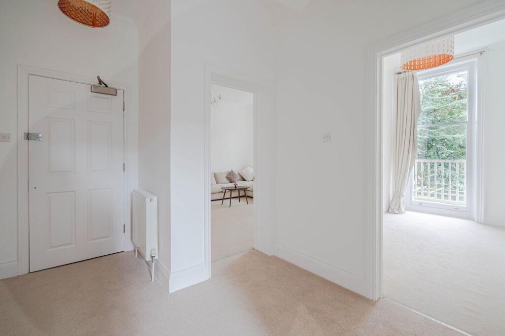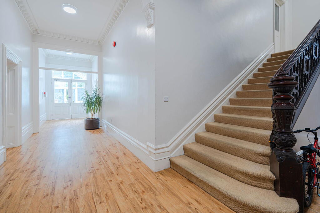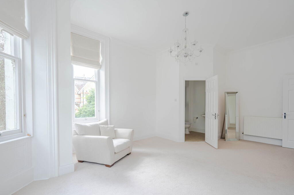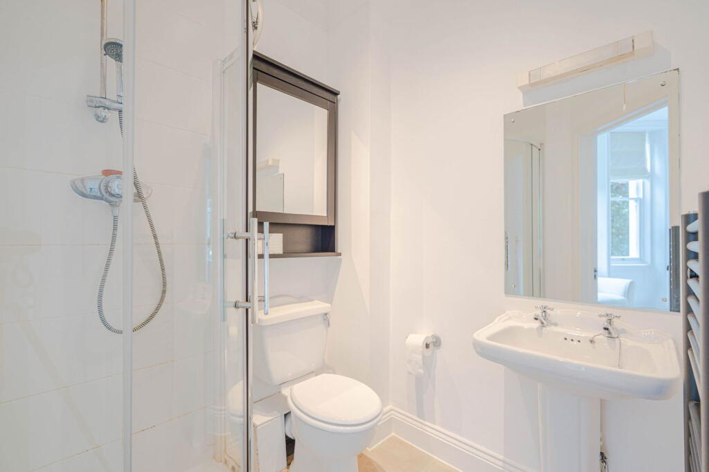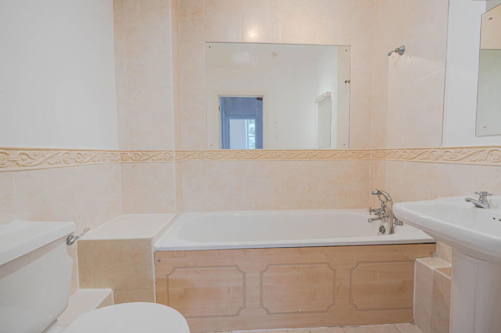 First-floor 2-bed apartment in secure gated development. Features high ceilings, sash windows, fitted kitchen, en-suite, terrace access, allocated parking. No lift. Suitable for professionals.