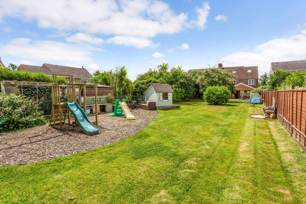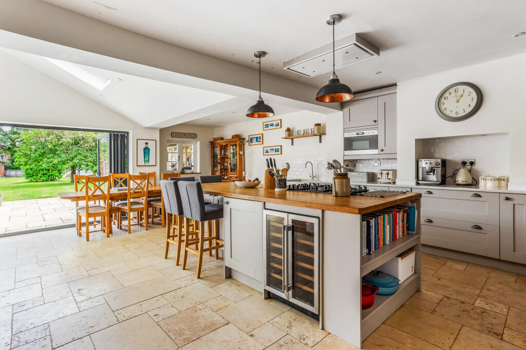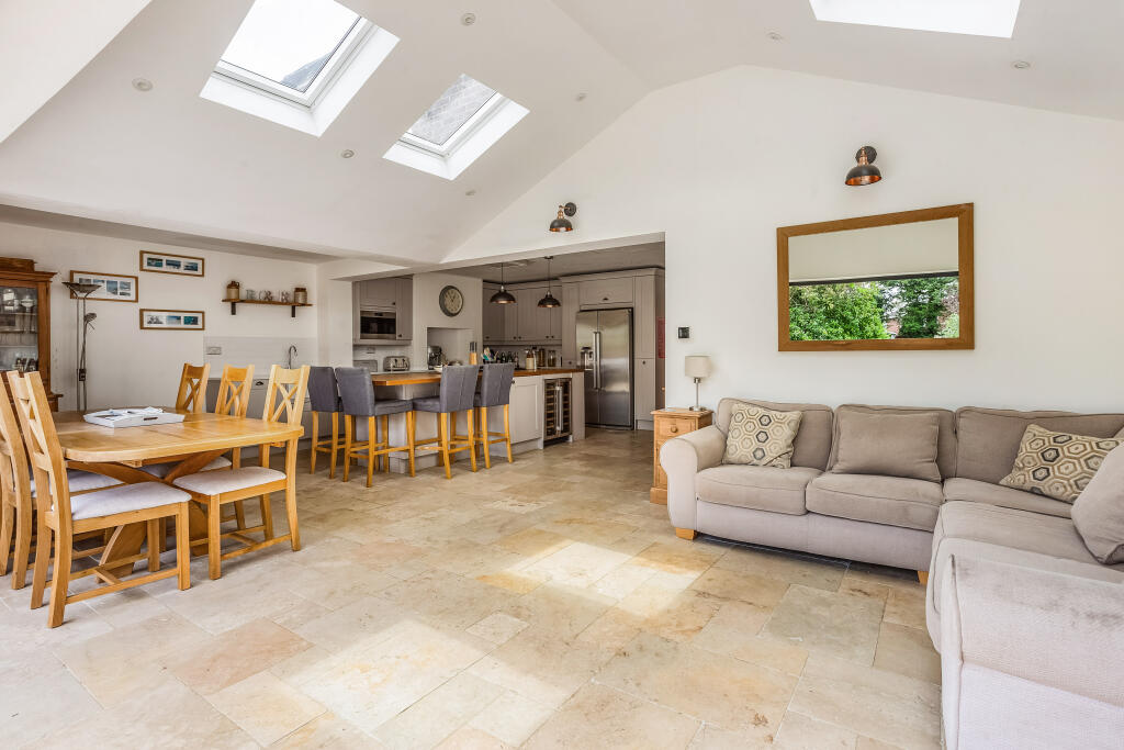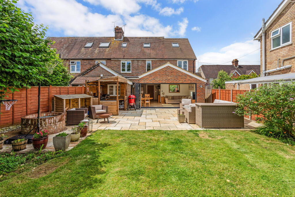 A beautifully presented four bedroom house with stunning open plan kitchen and living area, a large garden and outdoor entertaining area conveniently situated for the village centre.