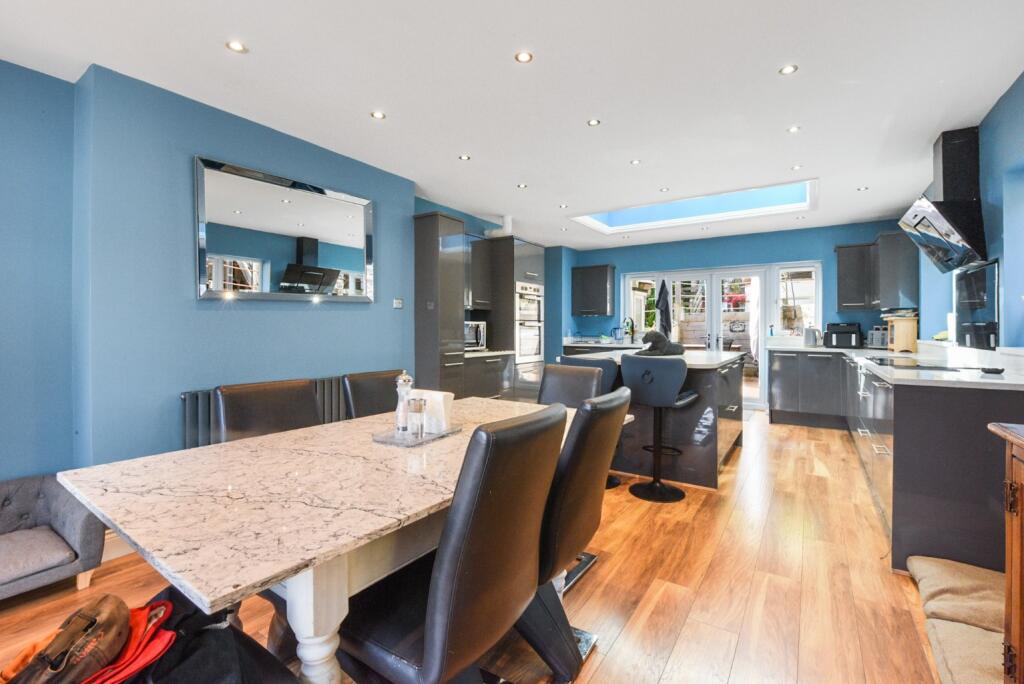 This is a detached property located on Vicarage Road in Halling, Rochester. It features 4 bedrooms and 3 bathrooms. While the interior is generally well-maintained with modern elements, some areas show signs of wear and could benefit from updates. The property benefits from a very large plot size, including a substantial garden and several outbuildings. The location is convenient, with proximity to local schools and the Halling train station. However, the list price of £1,100,000 appears very high compared to the average property price in the area, even considering the size of the plot.