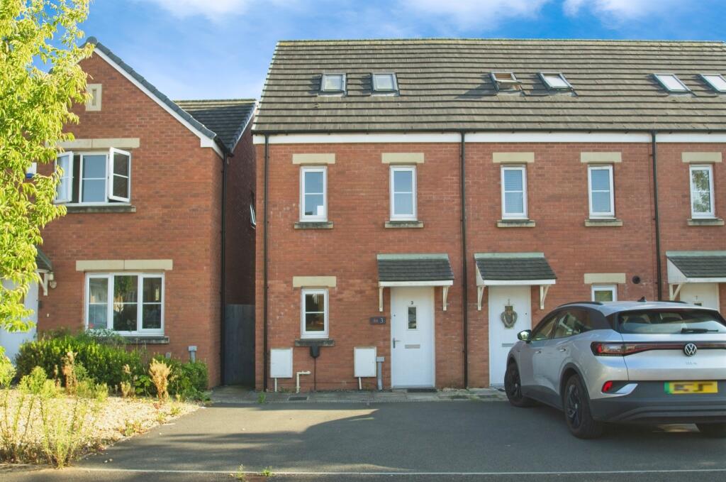 A modern three-bedroom townhouse on the popular Parc Derwen development in Coity, offering open-plan living, landscaped rear garden, off-road parking for two vehicles, and sold with no onward chain.