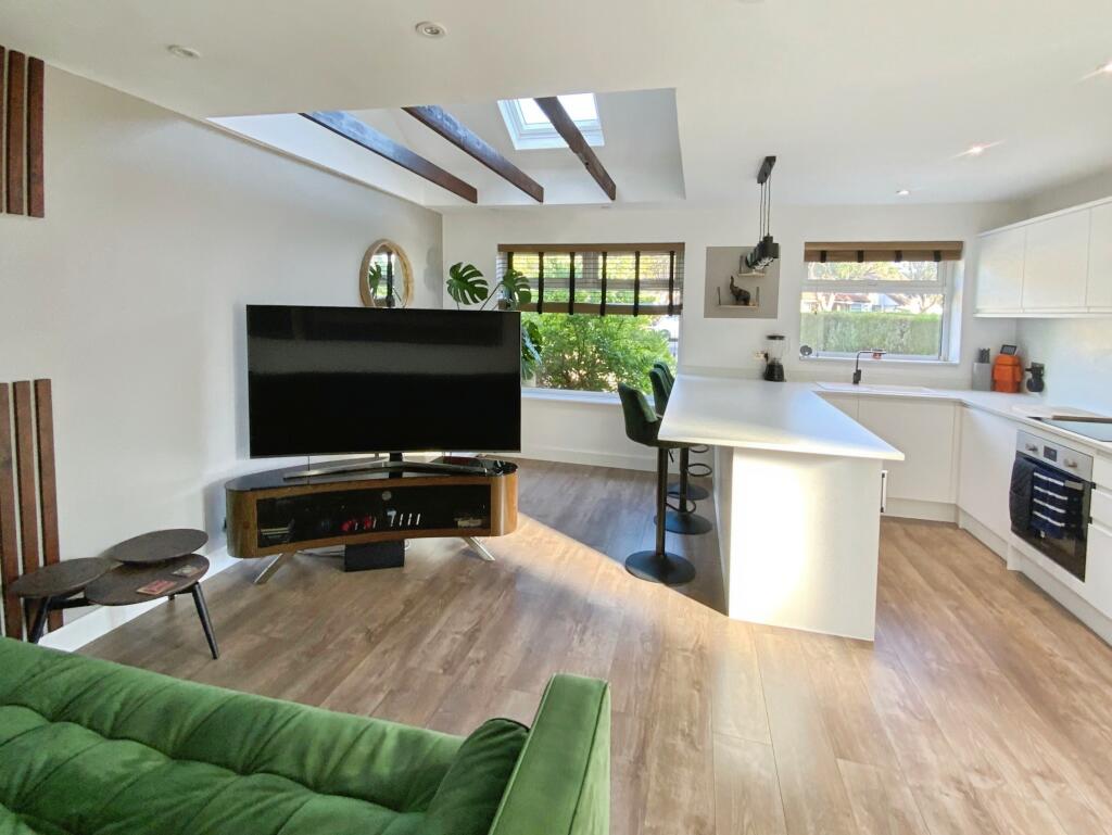 This immaculate, energy-efficient two-bedroom semi-detached bungalow offers stylish modern living with a stunning living kitchen, a bright conservatory, a westerly facing garden, ample parking, and a garage, all set in a sought-after location with no onward chain.