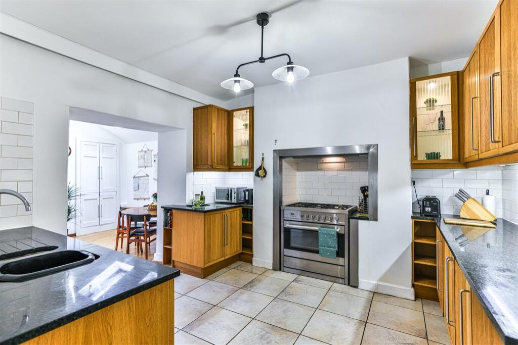 This five-bedroom property located on Huntingdon Road in Thrapston, Northamptonshire, presents as a charming period home with a blend of original features and modern updates. The property’s age and character are evident, with exposed brickwork and beams featured prominently in the images. The kitchens appear to be recently renovated, presenting a modern, functional space. Bathrooms also seem to have undergone updates, showing modern fixtures.