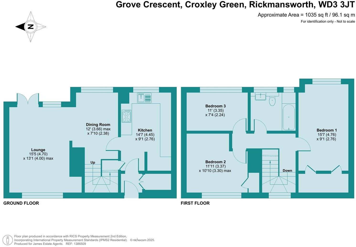 This is a three-bedroom duplex apartment located in Croxley Green. The property is listed with James Estate Agents. The interior photos suggest a traditional style that may benefit from some modernization. The property benefits from communal garden space. Nearby schools and transportation links add to the property’s appeal.