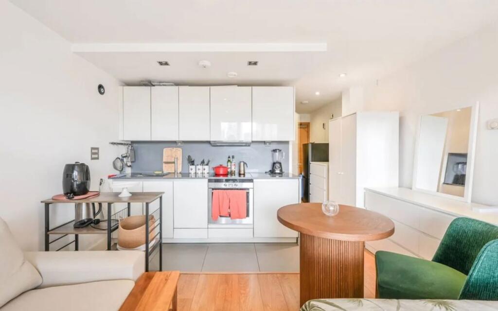 A lovely studio apartment situated within the waterside Caspian Wharf development, boasting beautiful communal gardens . This property has an open plan - living and kitchen area , aswell as outdoor space.
