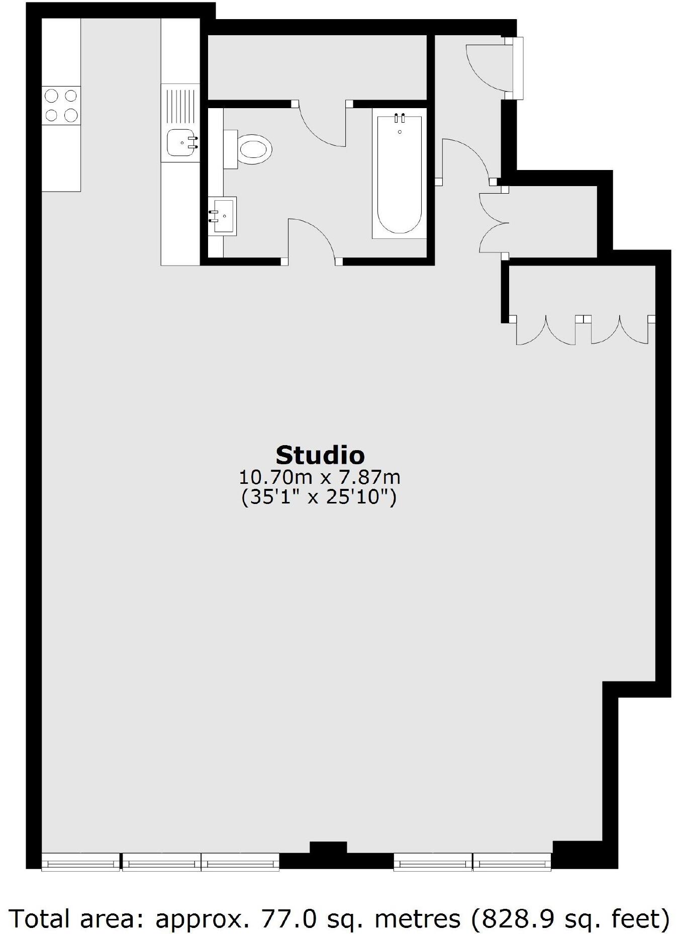 Located on the first floor of the Ziggurat Building, this loft studio apartment measures 830 sq/ft. Excellent storage facilities throughout the property, high ceilings and industrial support pillars.