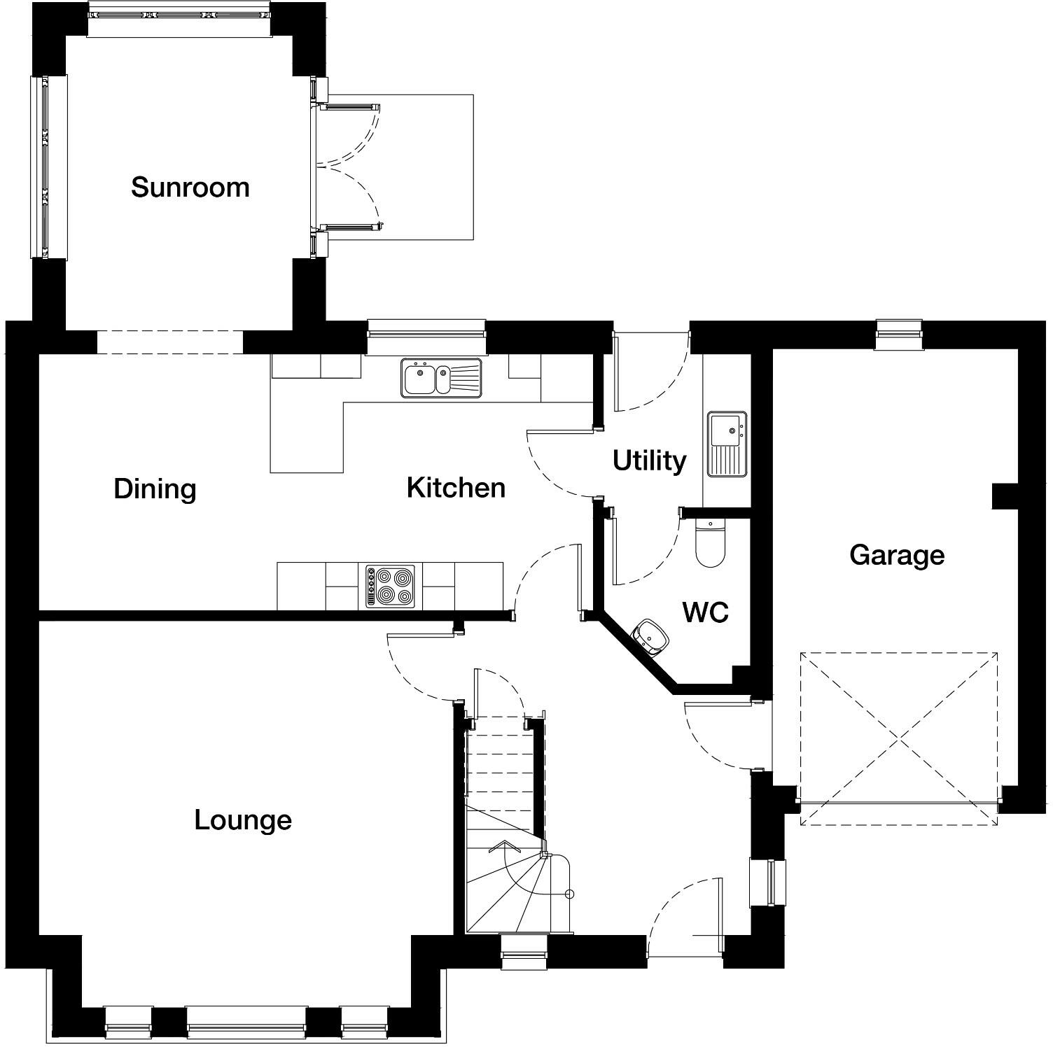 Outstanding detached family home with large floor area, garage, garden & equipped for modern life. With integrated kitchen appliances, bathroom tiling & fitted wardrobes included, buy a home that is ready to be lived in and loved. Sunroom available on selected plots for an additional cost of £25,000