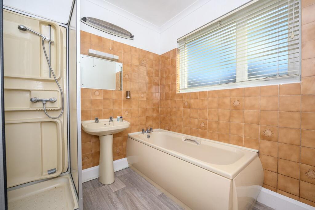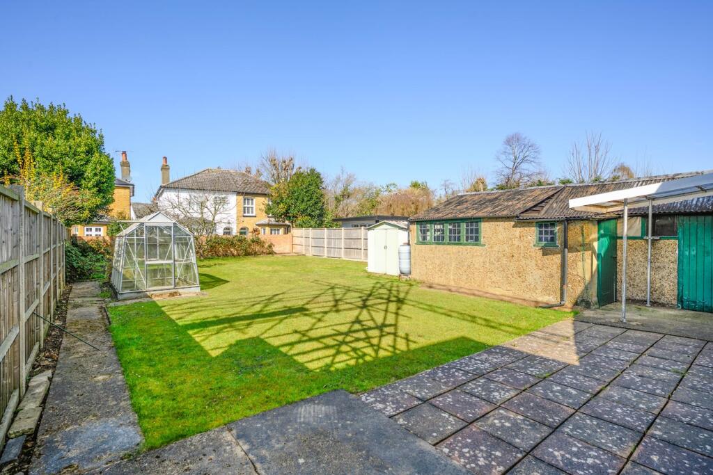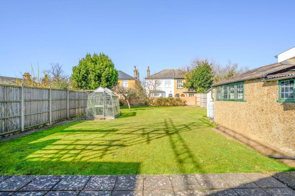 This property is a detached bungalow located in Walton-on-Thames, Surrey. The area benefits from a mainline train station providing links to London Waterloo, and is within reasonable proximity to local schools. The property itself is in need of modernisation, as can be seen in the provided images. The kitchen and bathroom are particularly dated. While the property benefits from a garden, the plot size is not specified. The list price of £800,000 is higher than the average price for the area (£652,035), however, nearby comparable properties are listed at higher prices, suggesting the list price may be reasonable given the location and potential for renovation. More information on the plot size would be needed to make a more informed assessment of value.