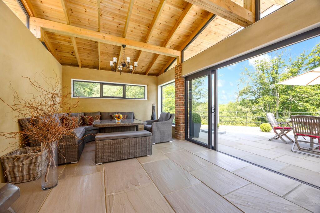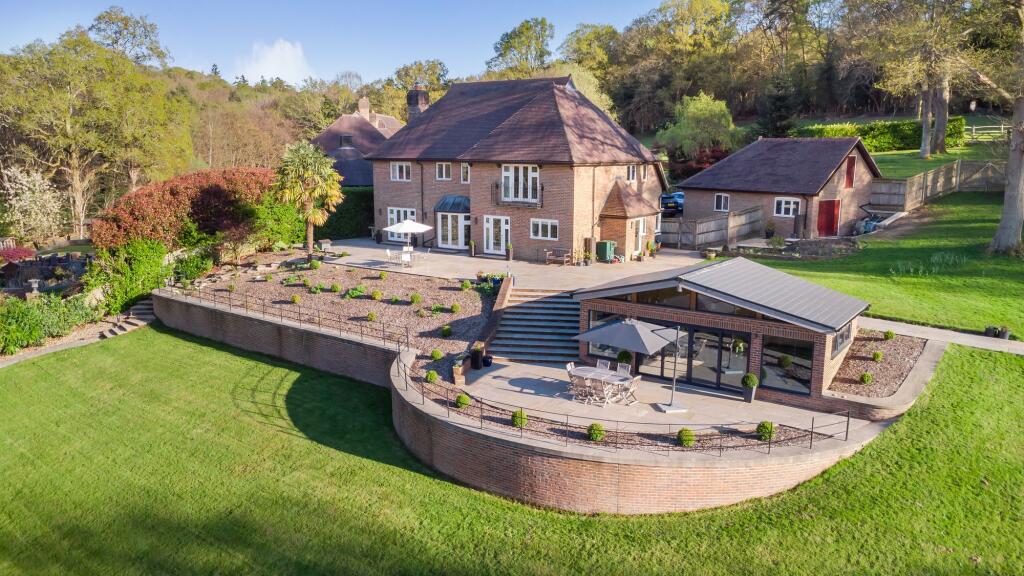 A handsome and beautifully maintained five bedroom (three bathrooms) detached modern home occupying gardens and grounds extending to 1.1 acres and located in a fine semi-rural position on the edge of the Ashdown Forest yet close to the Wealden market town of Crowborough.