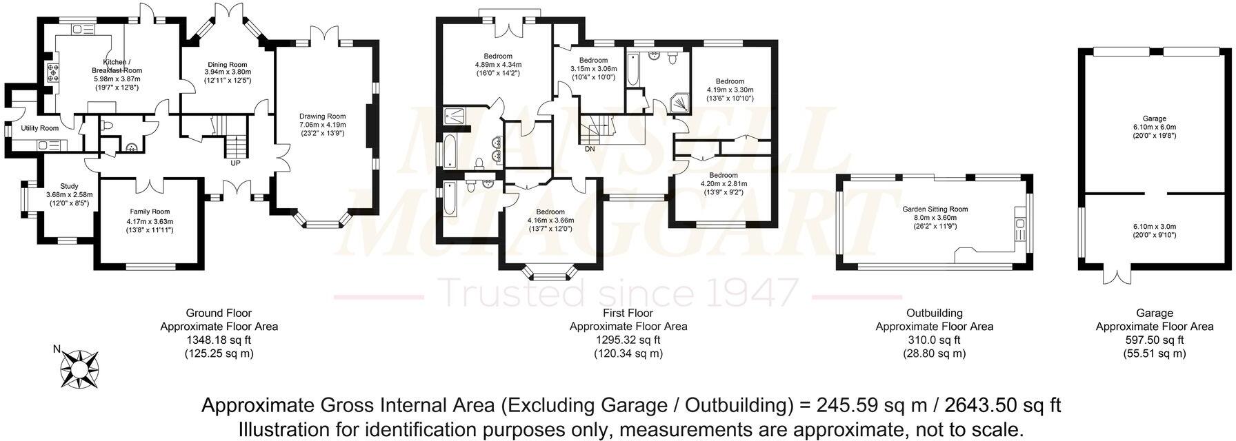 Land: The property boasts a substantial plot size of 2,643.50 sqft, offering ample outdoor space, including a well-maintained garden and patio areas. The presence of a detached building (possibly a summer house or studio) further adds to the property’s appeal.