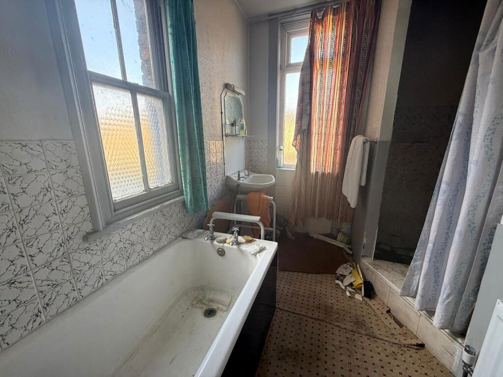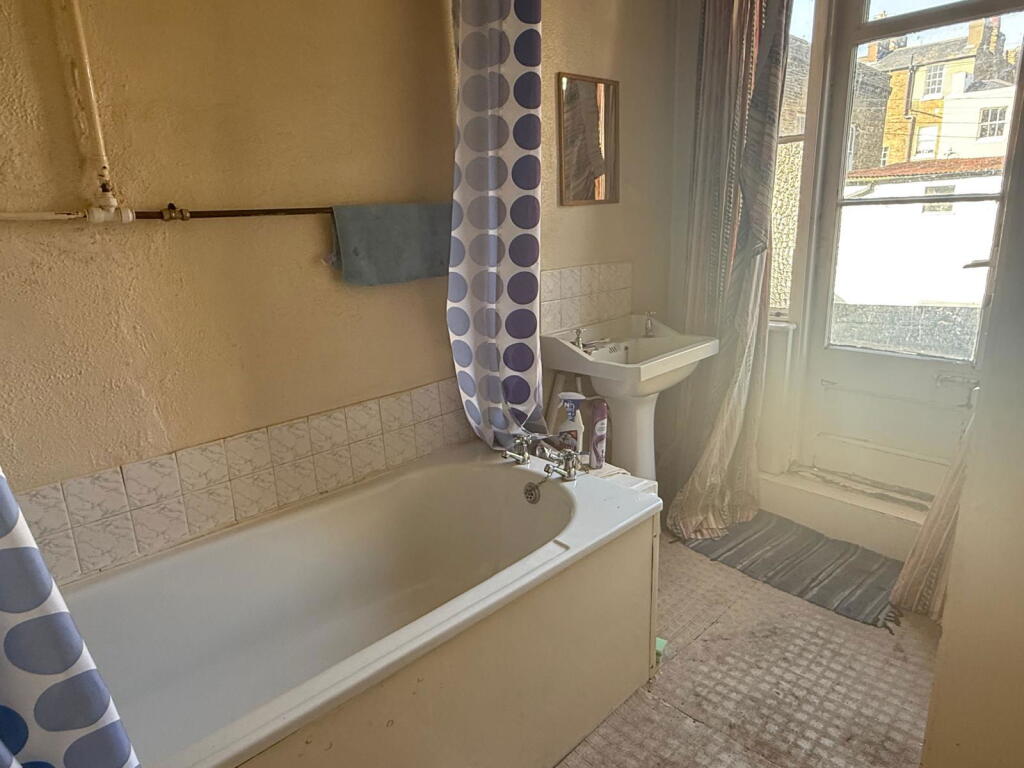 This is a large, terraced property located in the Central Harbour area of Ramsgate. The property boasts 9 bedrooms and 3 bathrooms, making it suitable for a large family or potential conversion into multiple units. However, the property is in need of significant renovation throughout. The images reveal widespread damp, peeling paint, and outdated fixtures and fittings. While the location is desirable, close to the sea and local amenities, the condition of the property is a major drawback. The property includes a large garage/outbuilding, which could be a valuable asset. The listing price reflects the need for renovation, but potential buyers should carefully consider the costs involved.