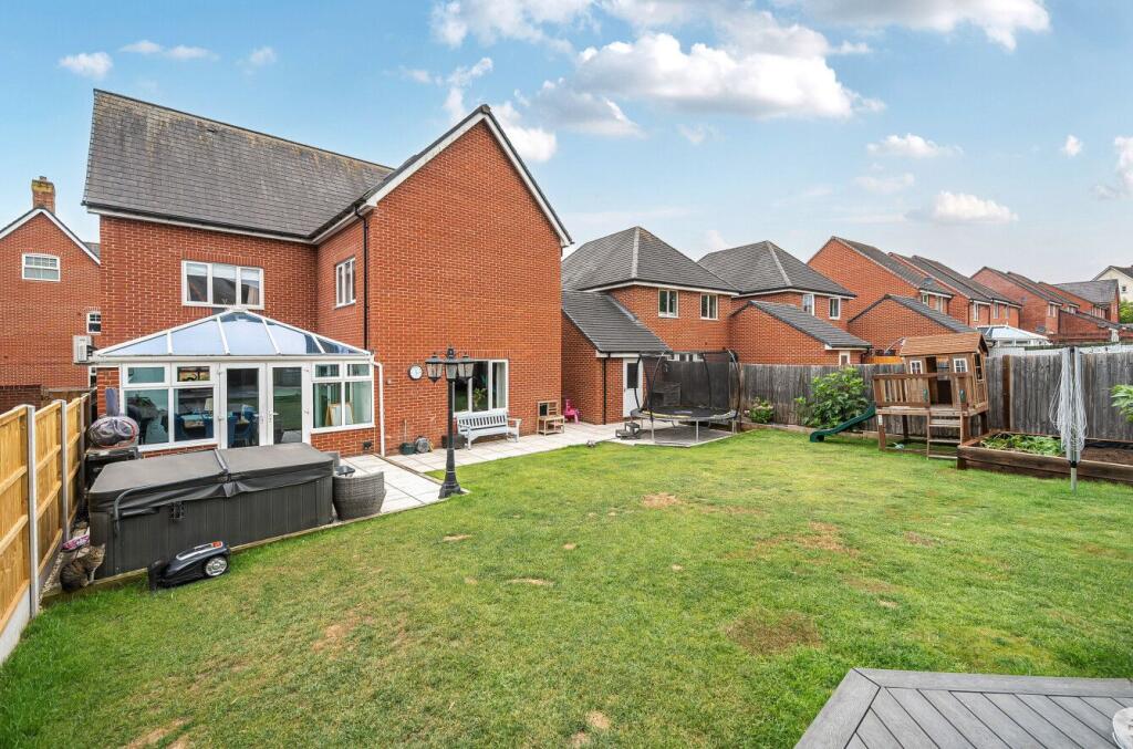 The property at Lords Way, Andover, SP11 6FQ is a detached house with 7 bedrooms and 3 bathrooms, boasting 2,294 sqft of living space. From the images, the property appears to be in good condition, with modern fixtures and fittings. The kitchen and bathrooms look recently updated. The house benefits from a conservatory, offering additional living space and natural light. The property also features a well-maintained garden with a hot tub, providing ample outdoor space for recreation and relaxation. The property is located in Andover, Hampshire, in the South East of England. Nearby, there are several schools with ‘Good’ Ofsted ratings, including Roman Way Primary School and Endeavour Primary School, making it an attractive location for families with children. The Andover train station is approximately 2.89 km away, providing convenient access to transportation. The average price per sqft in the area is £389. The property is listed at £650,000, which equates to approximately £283 per sqft. This is below the average price per sqft for the area, suggesting it represents good value for money considering the size, the number of bedrooms and bathrooms, and its overall condition. The property also has solar panels which will reduce energy bills.