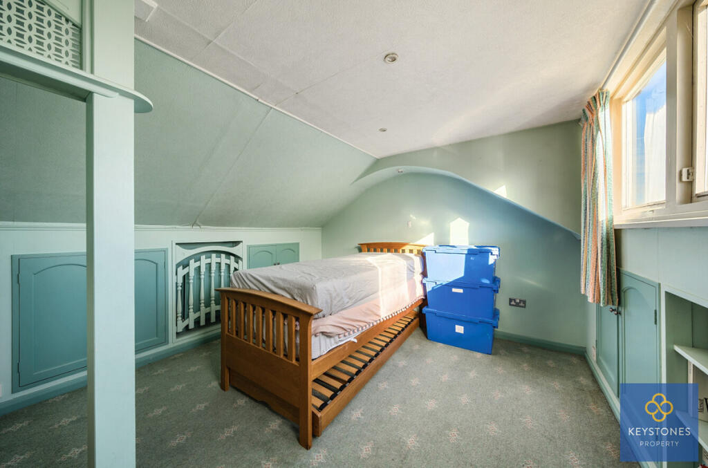 This is a 3-bedroom chalet in Mawneys, Romford. The property offers a good amount of living space at 1,283.88 sqft and includes a garden. Several well-regarded schools are located nearby, making it suitable for families. However, the interior is dated and requires renovation, which is reflected in the price. The property is listed for £500,000, which is slightly below the area’s average price per square foot, likely due to its condition. While it is located a fair distance from the nearest train station. Overall, this property presents an opportunity for buyers willing to invest in modernization.