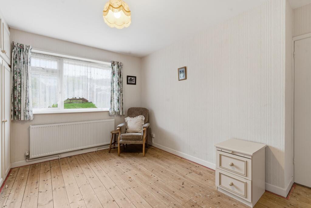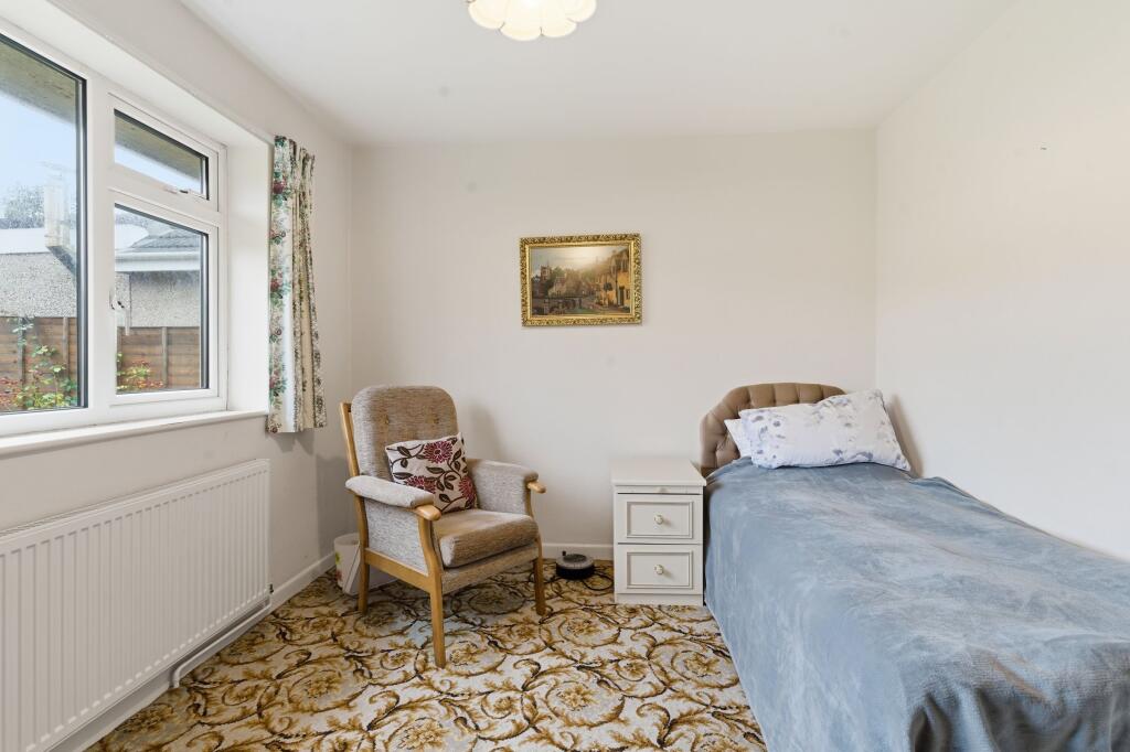 Two-bedroom bungalow on Hampden Road with off-road parking, garage and a large rear garden. Spacious living room, generous kitchen, two good bedrooms and scope to modernise or extend. Short walk to Worle High Street and local amenities.