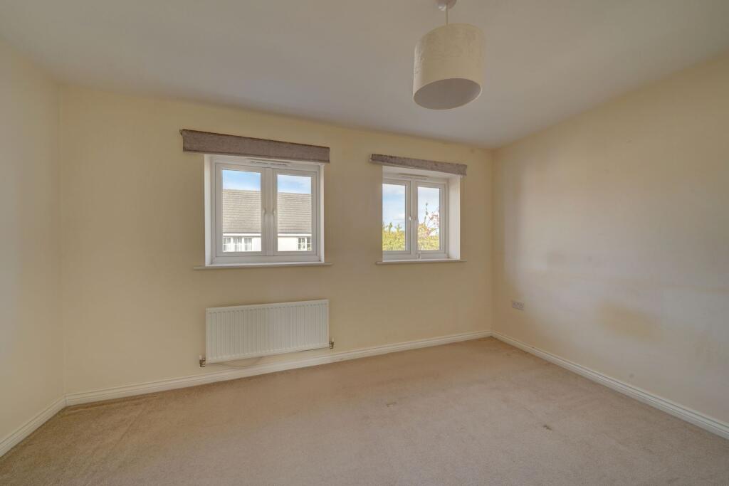 Modern 2-bed semi in Evesham, built 2014, in a quiet family area close to schools, shops, parks, town centre, and train station.