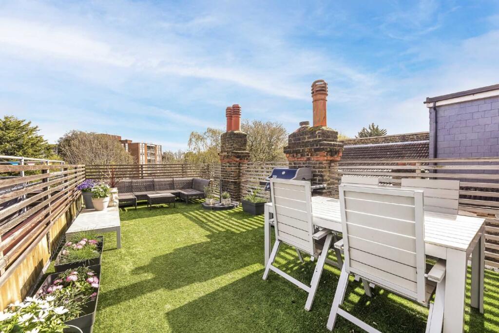 Located on the top floor of this attractive building is this split-level, two double bedroom home. Rare to the area this home has a large roof terrace, share in the freehold and open-plan living/reception room. This property is ideal for a buyer looking for a top floor property with the benefit...