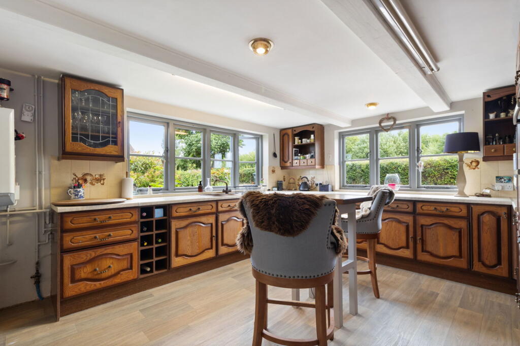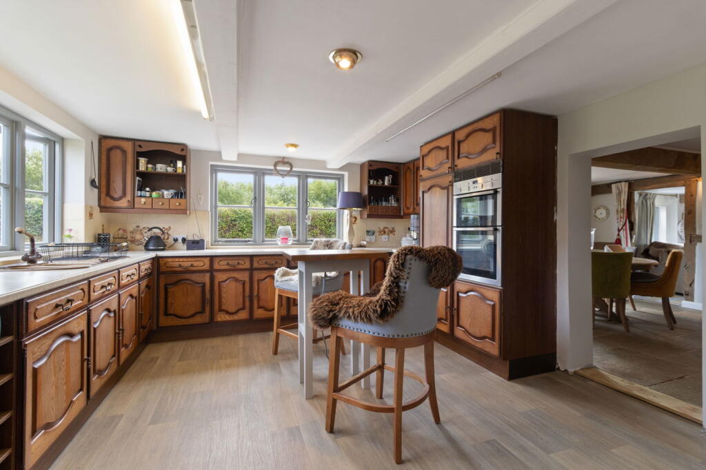 A detached cottage in Martley, Worcestershire, featuring a blend of traditional and modern styles with a large garden and a detached double garage. While the kitchen has been updated, the bathroom could benefit from renovation. The property’s price appears high compared to the average price per square foot in the area and nearby property values.