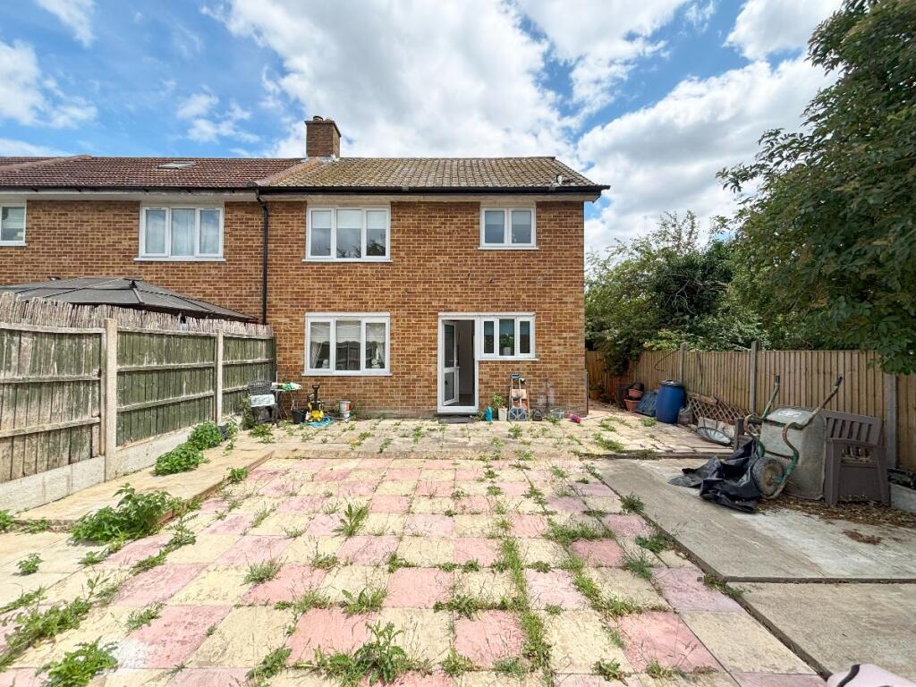 END OF TERRACE 3 BEDROOM HOUSE WITH GARDEN. located in HAROLD HILL down a quiet CUL-DE-SAC. The accommodation comprises, lounge dining room, fitted kitchen, three bedrooms, family bathroom, utility room, and a large rear garden with side access
