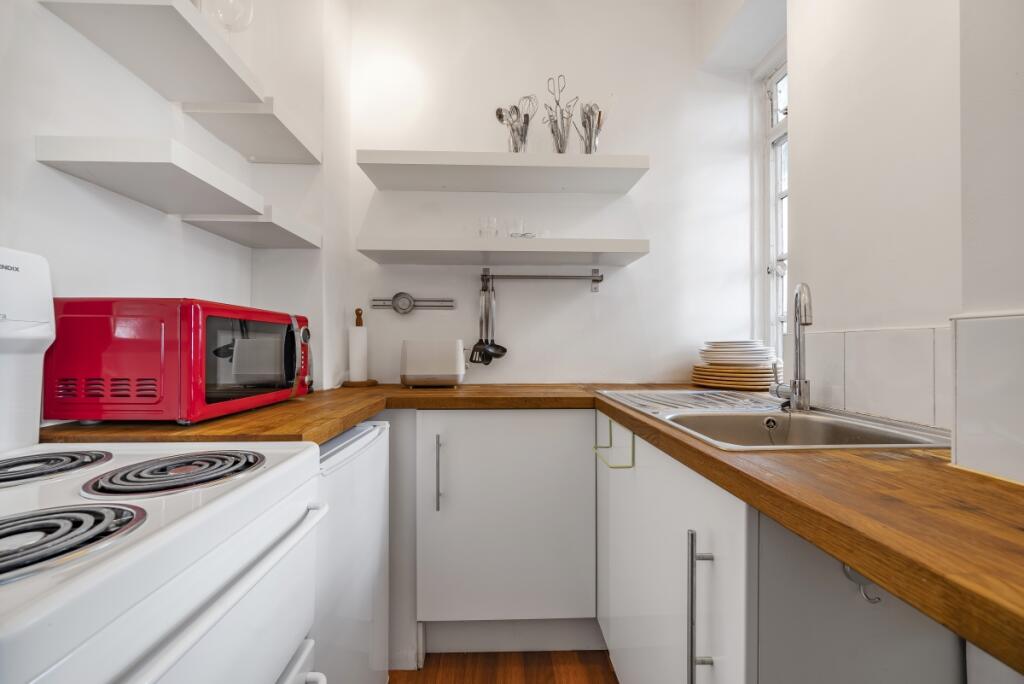 A bright studio apartment located on the 1st floor (lift access) in a portered purpose-built block moments from Kensington High Street.