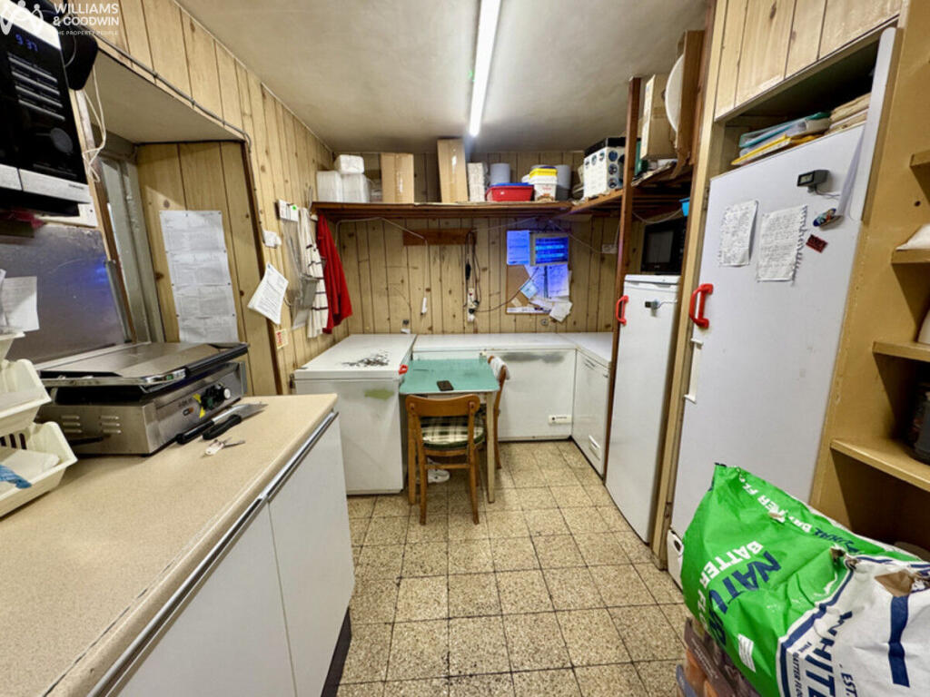 The property is located on St Cybi Street, Holyhead, and is listed as an end-of-terrace property. Holyhead is a port town in Isle of Anglesey, Wales, offering convenient access to transportation, including the Holyhead train station which is 0.59 KM away. Several schools are also located within a reasonable distance. Based on the images, the property appears to be a former fish and chip shop. The interior shots show a commercial kitchen and serving area. The condition appears to be fair, but it is likely in need of renovation to convert it into a residential property. Given the property type and location, the average price per sqft in the area is £312. The listing price is £275,000, but the square footage of the property isn’t available, making it difficult to assess the price accurately. However, the average price in the area is £262,500. It is difficult to determine the amount of land included with the property. The images show a small outdoor area, but it is unclear if there is a garden.