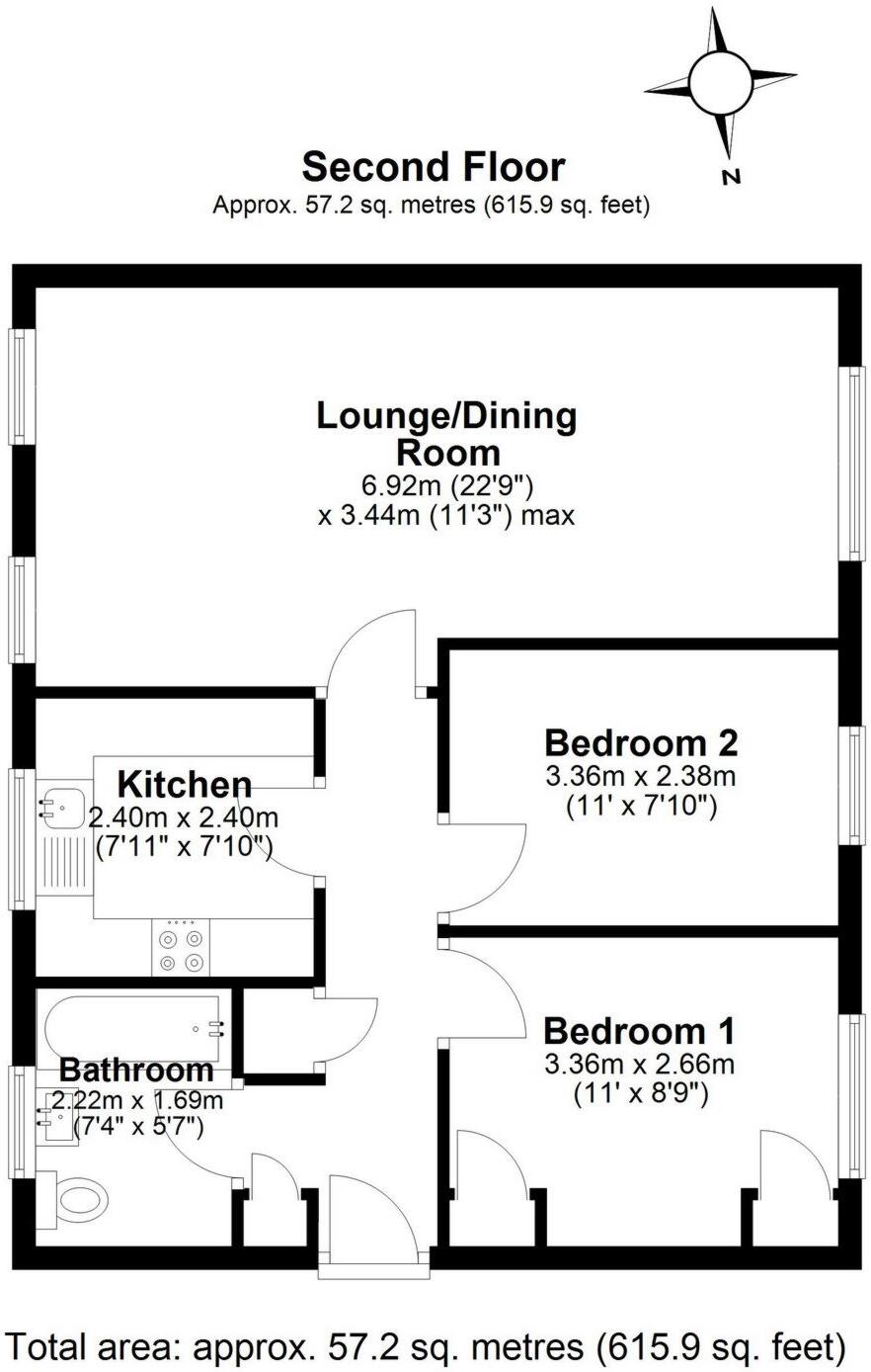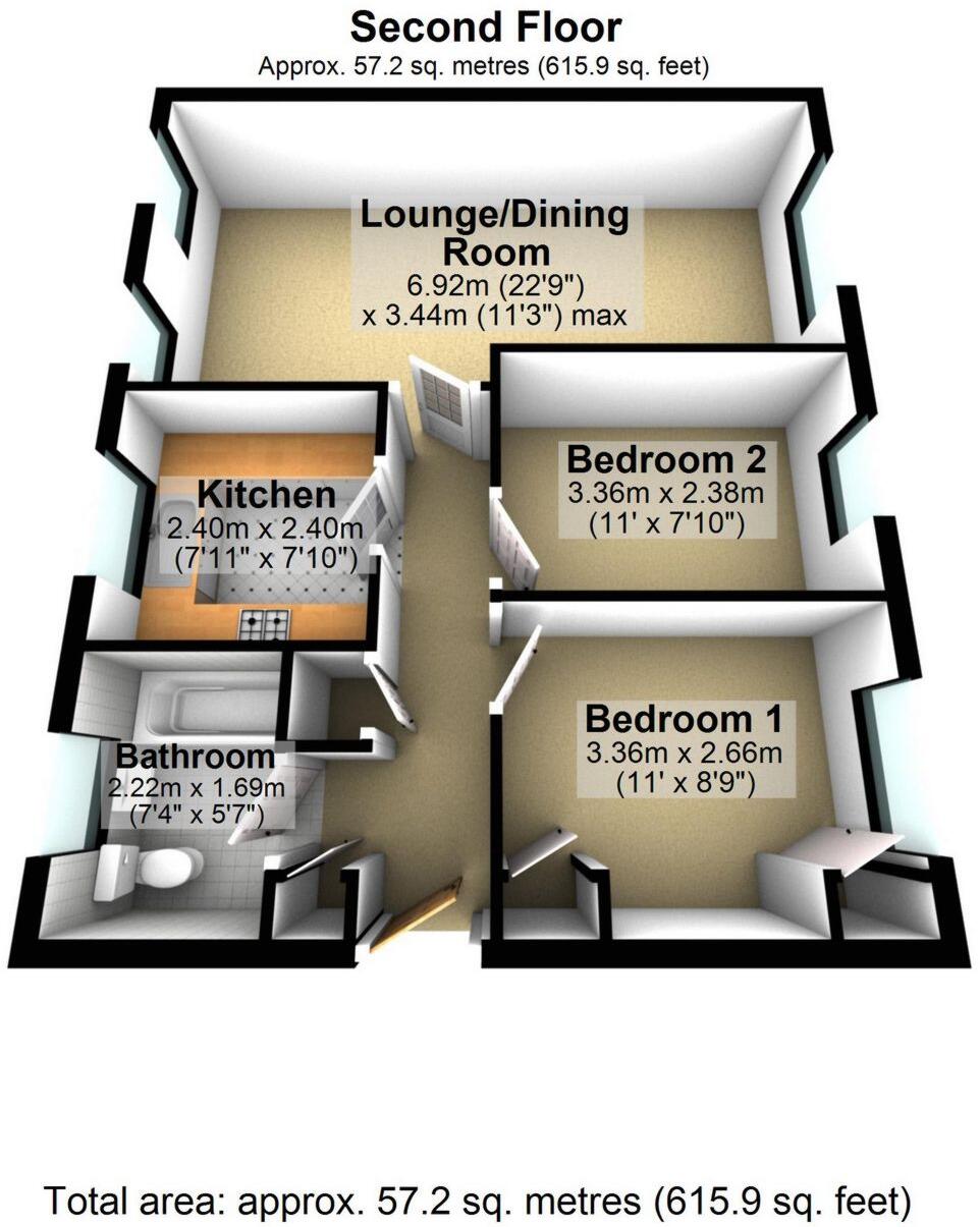 While the plot size is noted as 615.90 sqft, the images don’t offer a clear view of the outdoor space associated with the apartment. More information would be needed to assess the size and usability of any private garden or communal grounds.