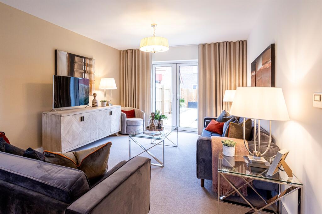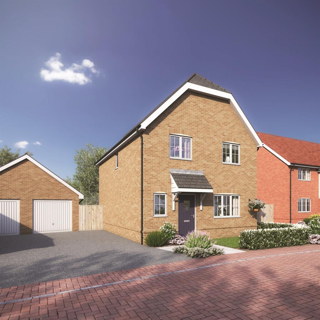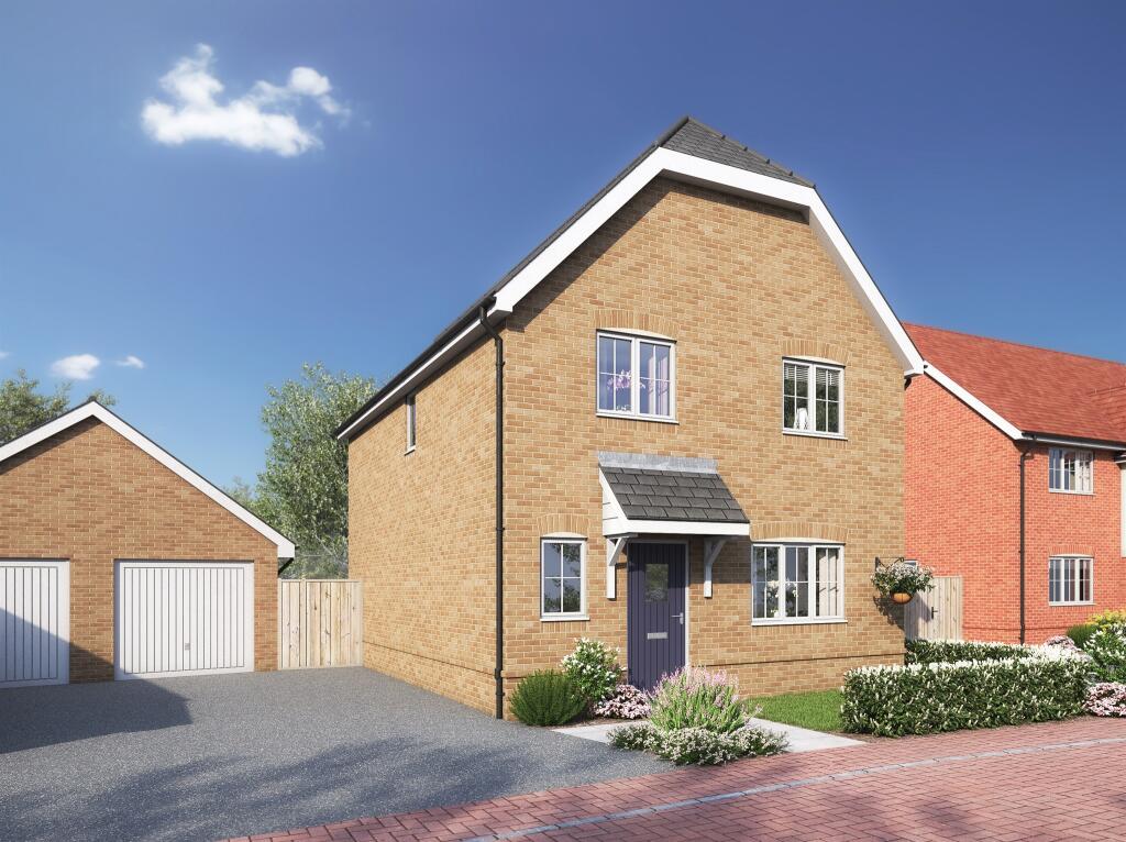 WEST FACING GARDEN to Plot 5, The Jackdaw, a brand new 4 bedroom detached house with 20' open plan kitchen diner, separate living room, master en-suite with fitted wardrobe, cloakroom, garage and 2 parking spaces. Integrated appliances. EV charging point & Solar PV.