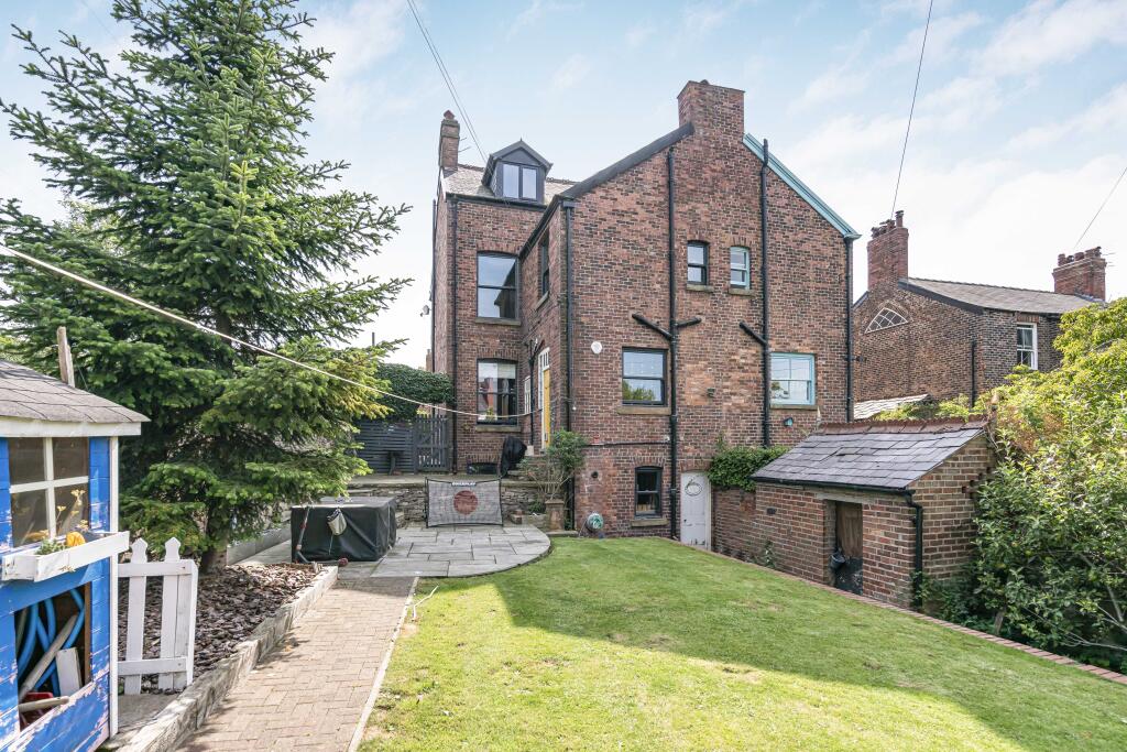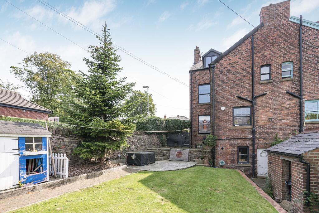The property is a semi-detached house located on Buxton Road in Macclesfield, Cheshire. It features 5 bedrooms and 1 bathroom. Macclesfield is a market town in Cheshire, known for its silk industry heritage and proximity to the Peak District National Park. The property is located 1.30 KM from Macclesfield train station and has a number of schools nearby. The property appears to be in good condition, with a modern kitchen and bathroom. The property includes a garden with a shed. The list price is £650,000. The average price per square foot in the area is £471. The property has 1,686.37 square feet, giving it a price per square foot of £385. The average property price in the area is £327,231 with an average sqft of 694. Nearby listings of similar properties are selling for between £240,000 and £375,000. Given the size, number of bedrooms and condition, the property appears to be overpriced.
