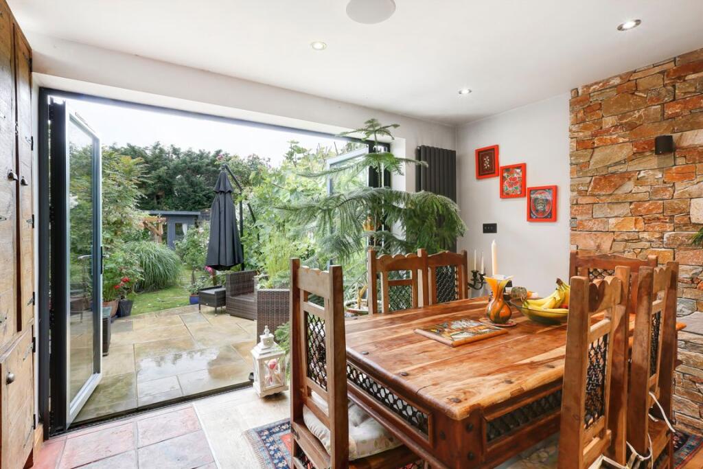 An immaculately presented, three bedroom family home carefully designed by the current owners showcasing intricate detail throughout the house. The property continues to impress with a mature South-West facing garden and a tucked way home office to the rear.