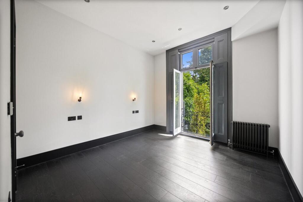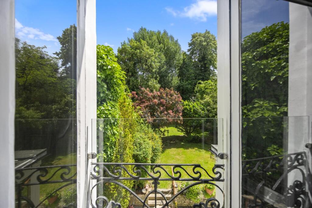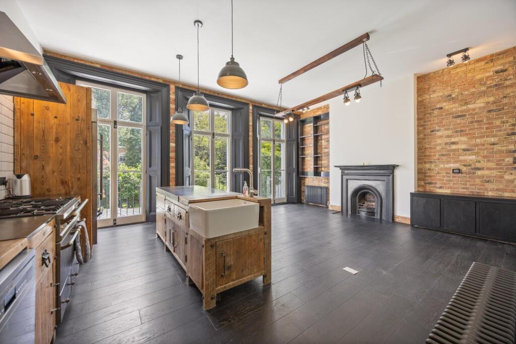 Stunning 2 double bedroom, 2 bathroom apartment - Raised ground floor in beautiful period conversion - High ceilings and wood floors throughout - Reception with exposed brickwork walls, future fireplace and full height doors to Juliet balconies with garden views - Open plan crafted natura...