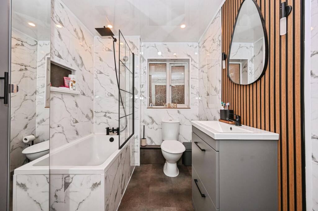 This is a detached property located on Holcroft Drive in Abram, Wigan. The house has four bedrooms and two bathrooms. The listing price is £385,000. The property appears to be in very good condition, with modern interior design and well-maintained outdoor space. However, the price seems high compared to other properties in the immediate vicinity.