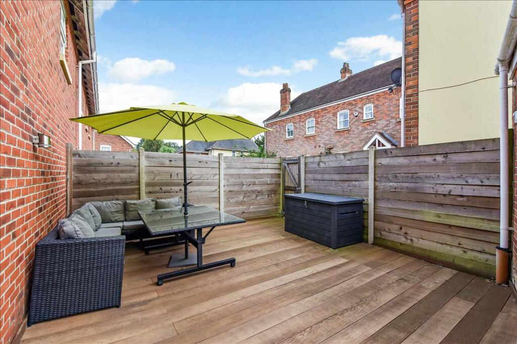 This stylish and contemporary Coach House is nestled in a tranquil gated community, just a short, flat walk from top-notch local amenities in the highly desirable Sarisbury Green area. The versatile living space spans two floors and includes two double bedrooms, a 13-ft living room leading (cont.)