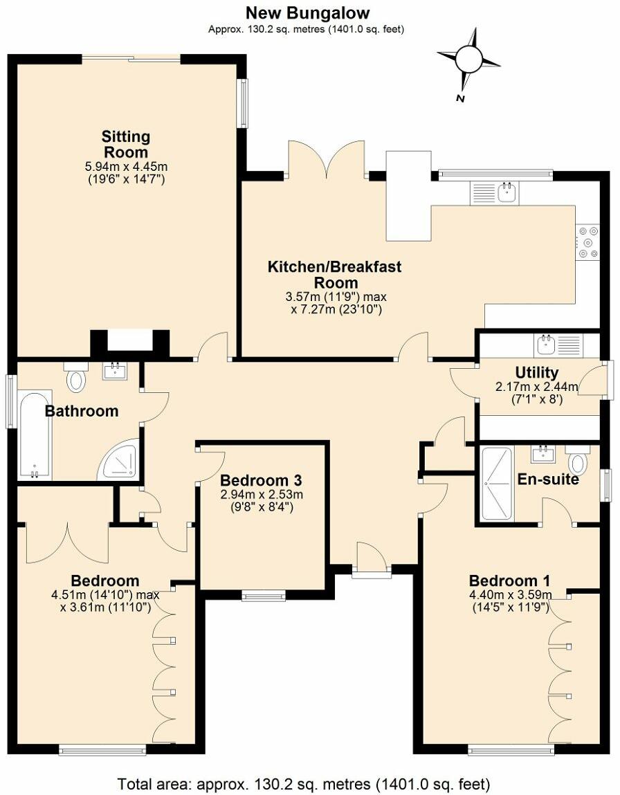 Spacious 3 Bedroom bungalow with double garage and rural views to the rear.