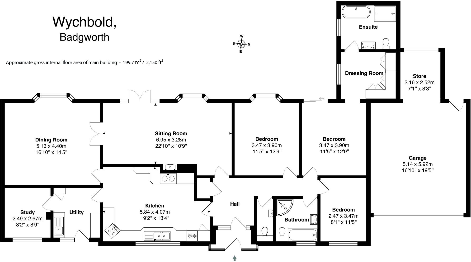This detached bungalow is located in Badgworth, near Axbridge and Wedmore, in the Sedgemoor district of Somerset. The property features three bedrooms and two bathrooms, with a total living space of 1,586.39 sqft.