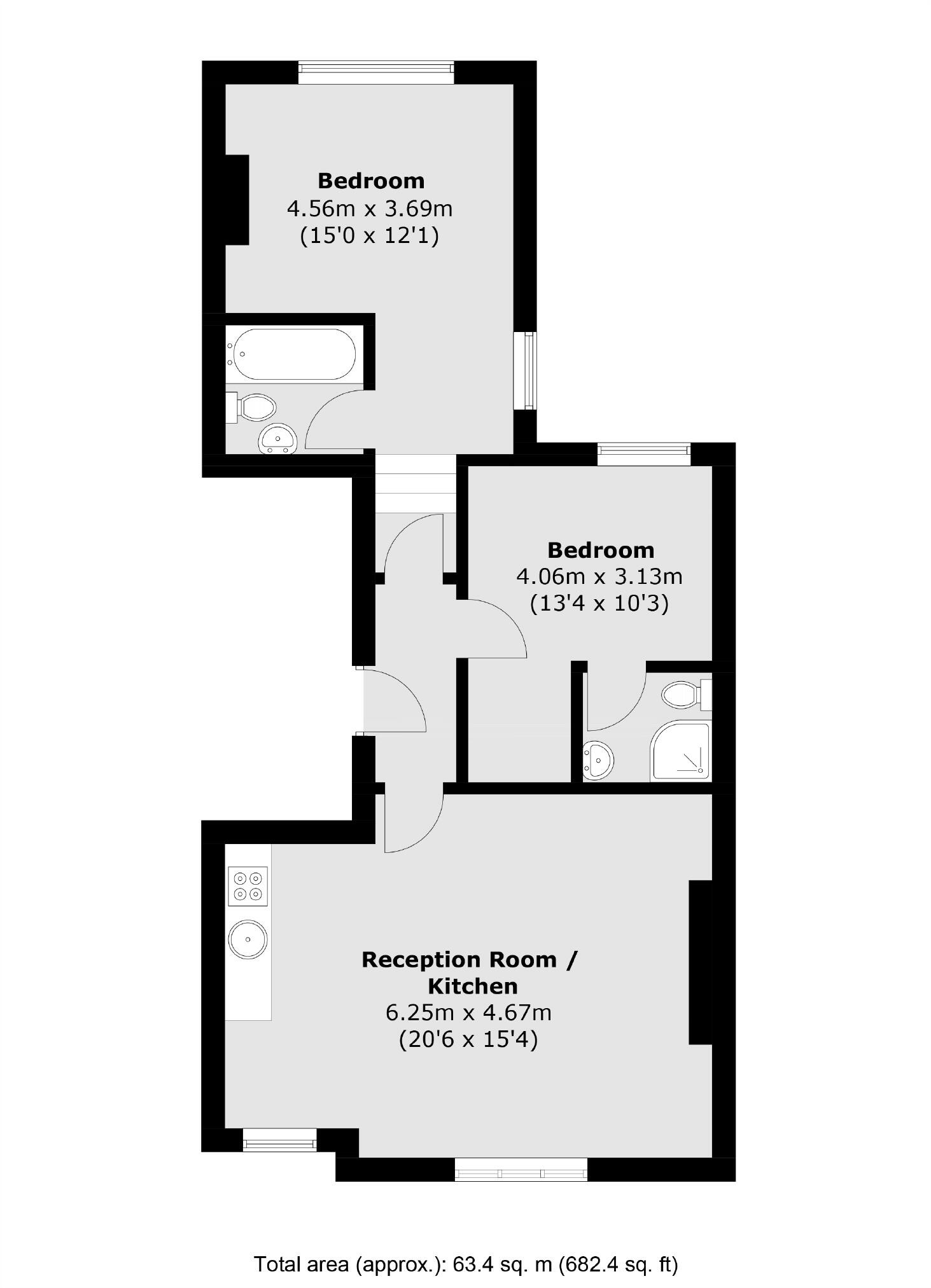 This bright two bedroom, two bathroom first floor flat would make the perfect home for professional sharers or a couple.