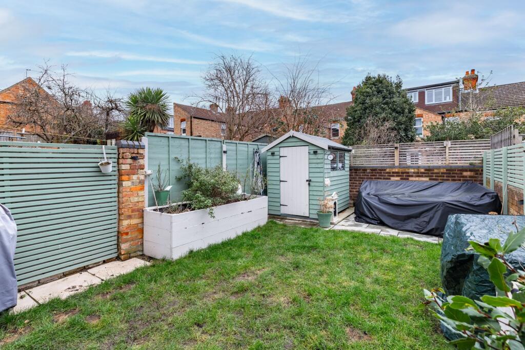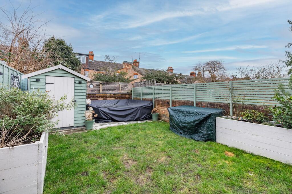 This three-bedroom terraced house is located on Gladstone Street in Bedford. The property has been recently renovated to a high standard, as seen in the photos. It benefits from a modern kitchen and bathroom, and has a good-sized garden. The location is convenient, with nearby schools and transportation links. However, there is limited information on the average price per square foot for the area, making it difficult to definitively assess the value for money. The property is presented well and appears to be in excellent condition.